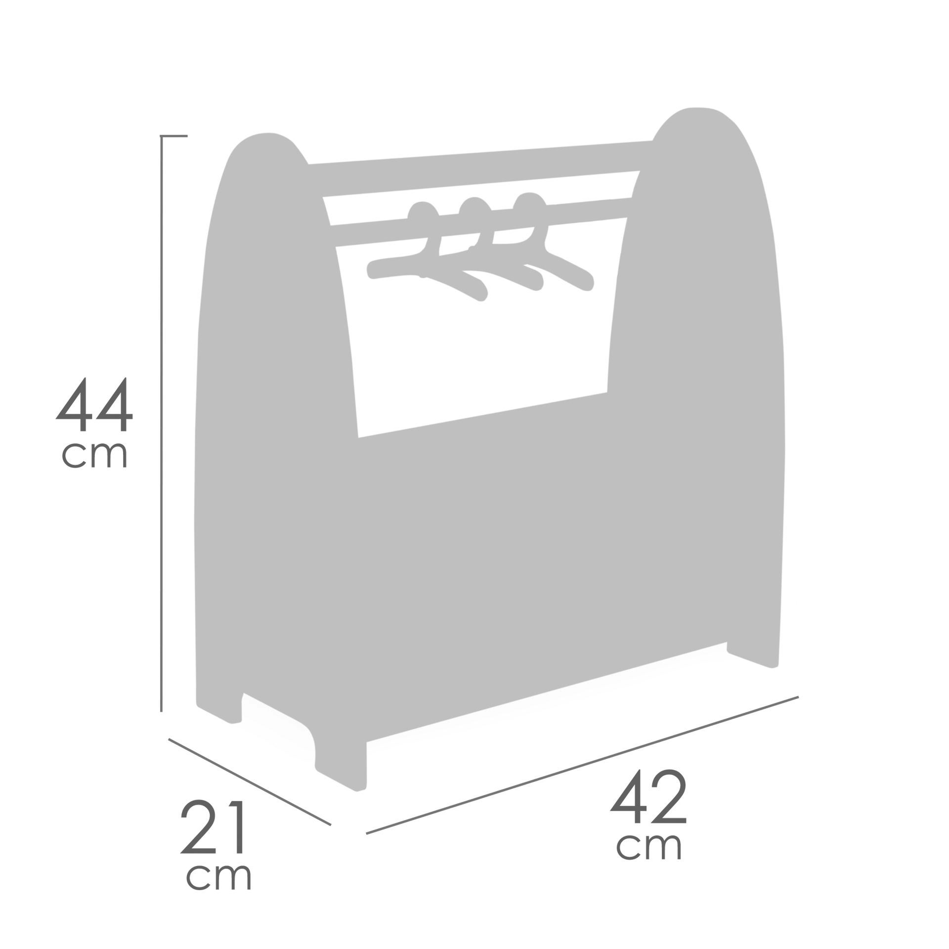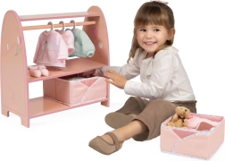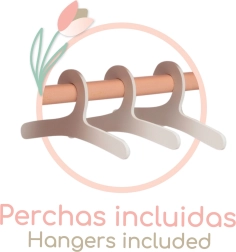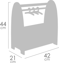Drabužių skersinys su 3 medinėmis pakabomis ir viršutine lentyna palengvina drabužėlių kabinimą ir rūšiavimą iki maždaug 19 cm ilgio.