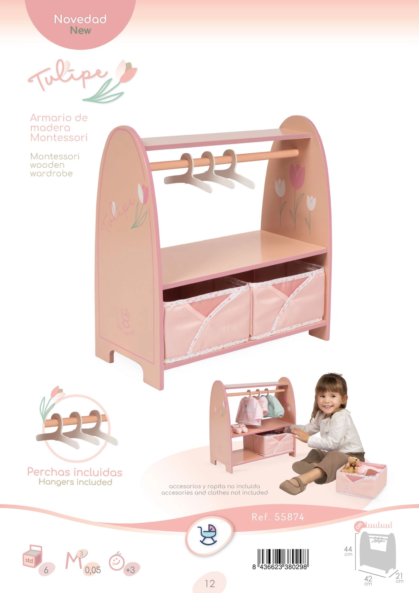 Dizainas su tulpių motyvu šiltuose pasteliniuose atspalviuose suteiks jaukumo bet kuriam kambariui. Konstrukcija iš MDF, masyvios medienos ir metalo yra stabili ir patvari, idealiai tinka vaikams nuo 3 metų. Produktas supakuotas į dėžutę, derančią su kolekcija, o pasirinktų modelių pakuotėse rasite QR vaizdo instrukciją surinkimui.
