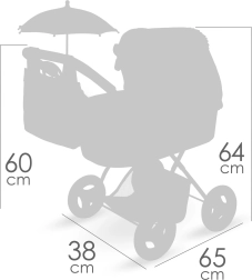 Komplekte yra praktiškas skėtis nuo saulės, nuimamas krepšys ir lopšio uždangalas su akutėmis tvirtam pritvirtinimui. Minkštas čiužinys ir erdvus lopšys suteiks lėlei komfortą, o apatinis krepšelis pasiūlys vietos smulkmenoms ir aksesuarams.
