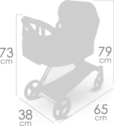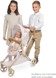 Vežimėlis yra sulankstomas, sulankstytas užima minimaliai vietos ir patogus transportuoti. Nuimamas nešiojamas lopšys leidžia saugiai pernešti lėlę, o reguliuojamas stogelis, tritaškiai diržai ir pasukami priekiniai ratukai užtikrina patogų ir sklandų važiavimą. Komplekte yra stilingas krepšys ir apatinis daiktų krepšys viskam, ko reikia.