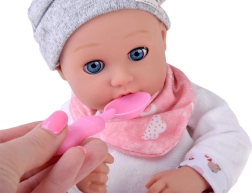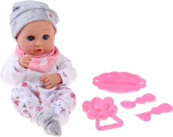 Į komplektą įeina praktiškas maitinimo rinkinys rožinės spalvos – lėkštutė, šaukštelis ir šakutė – taip pat barškutis. Vaikai gali pilnai mėgautis vaidmeniniais žaidimais, lavinti vaizduotę, smulkiąją motoriką ir socialinius įgūdžius.