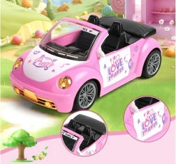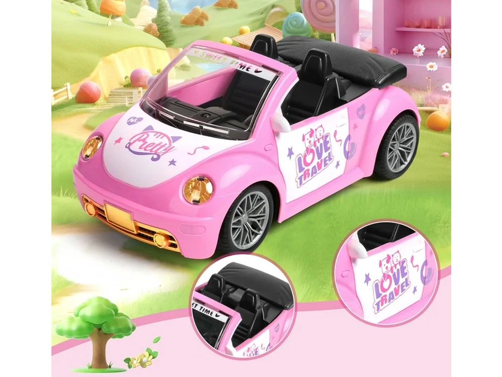 Atviras kabrioletas su detaliu interjeru ir dekoratyviniais lipdukais puikiai papildo lėlių ir figūrėlių pasaulį.