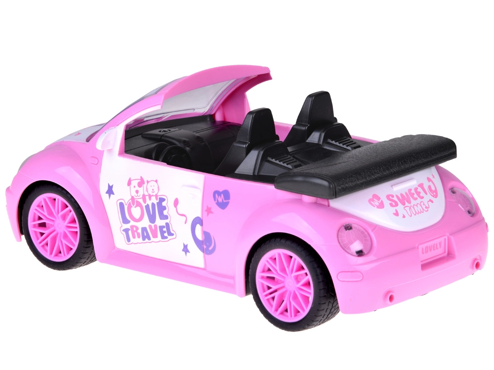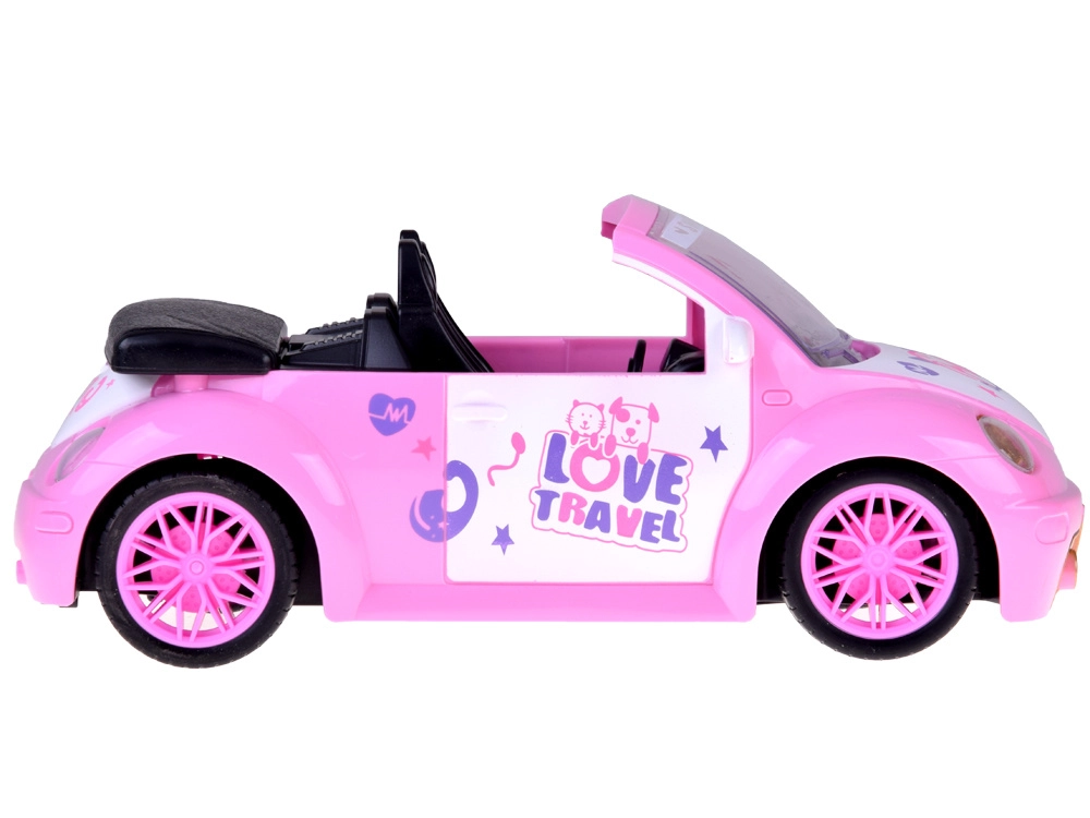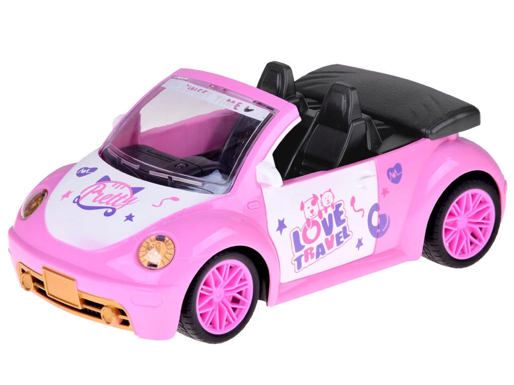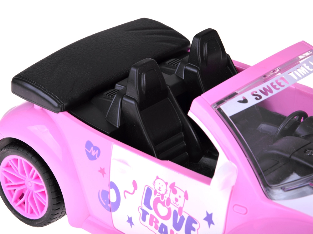 Stilingas rožinis kabrioletas lėlėms derina patrauklią išvaizdą su paprastu valdymu. Vaikai dviem mygtukais lengvai valdo kryptį ir posūkius, o priekiniai žibintai važiuojant pirmyn užsidega, suteikdami dar realesnį įspūdį. Idealu vaikų kambariui, lygiam paviršiui.