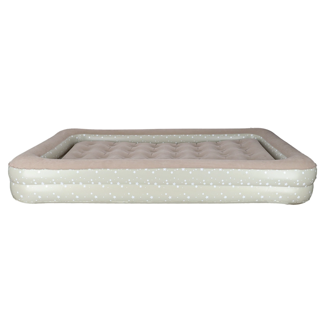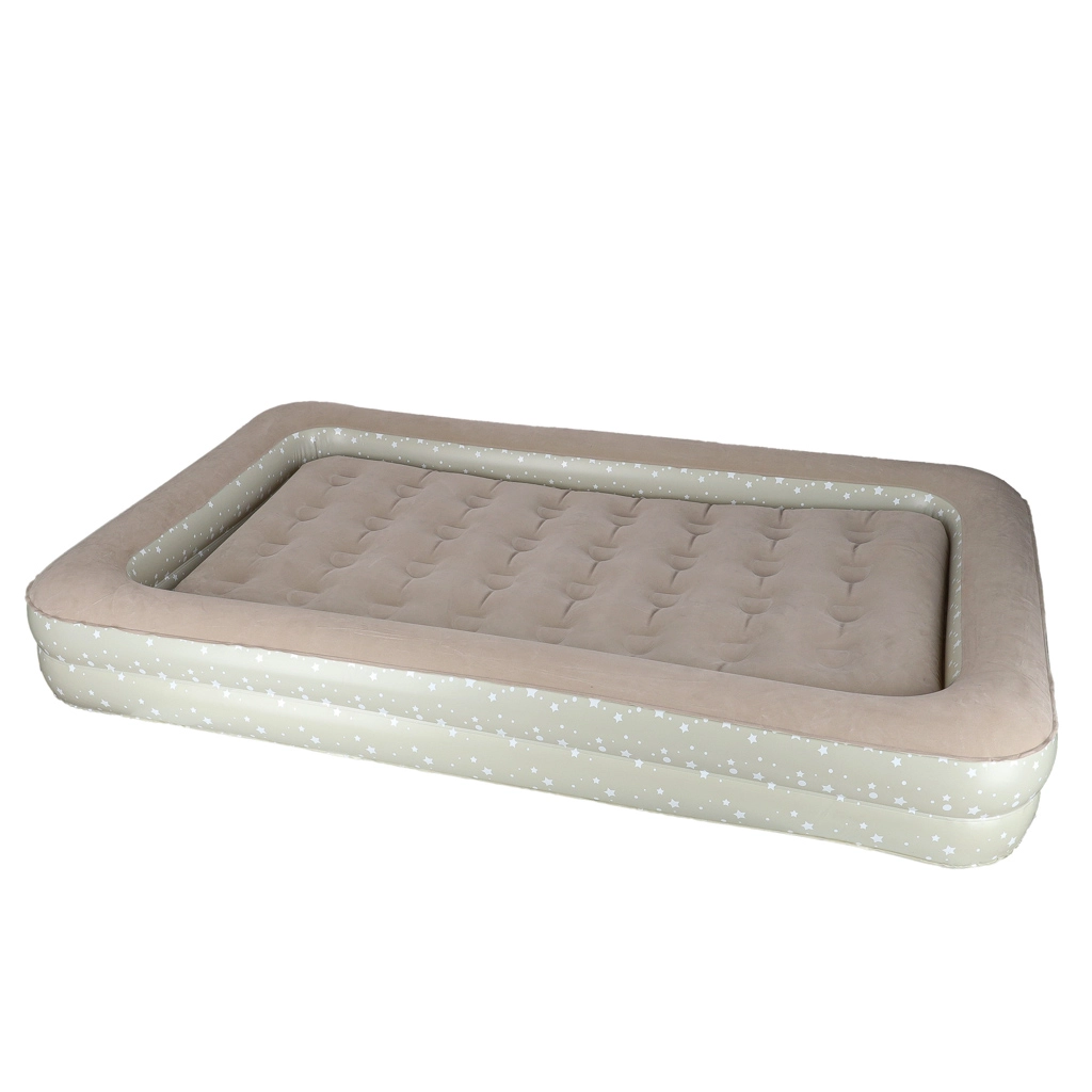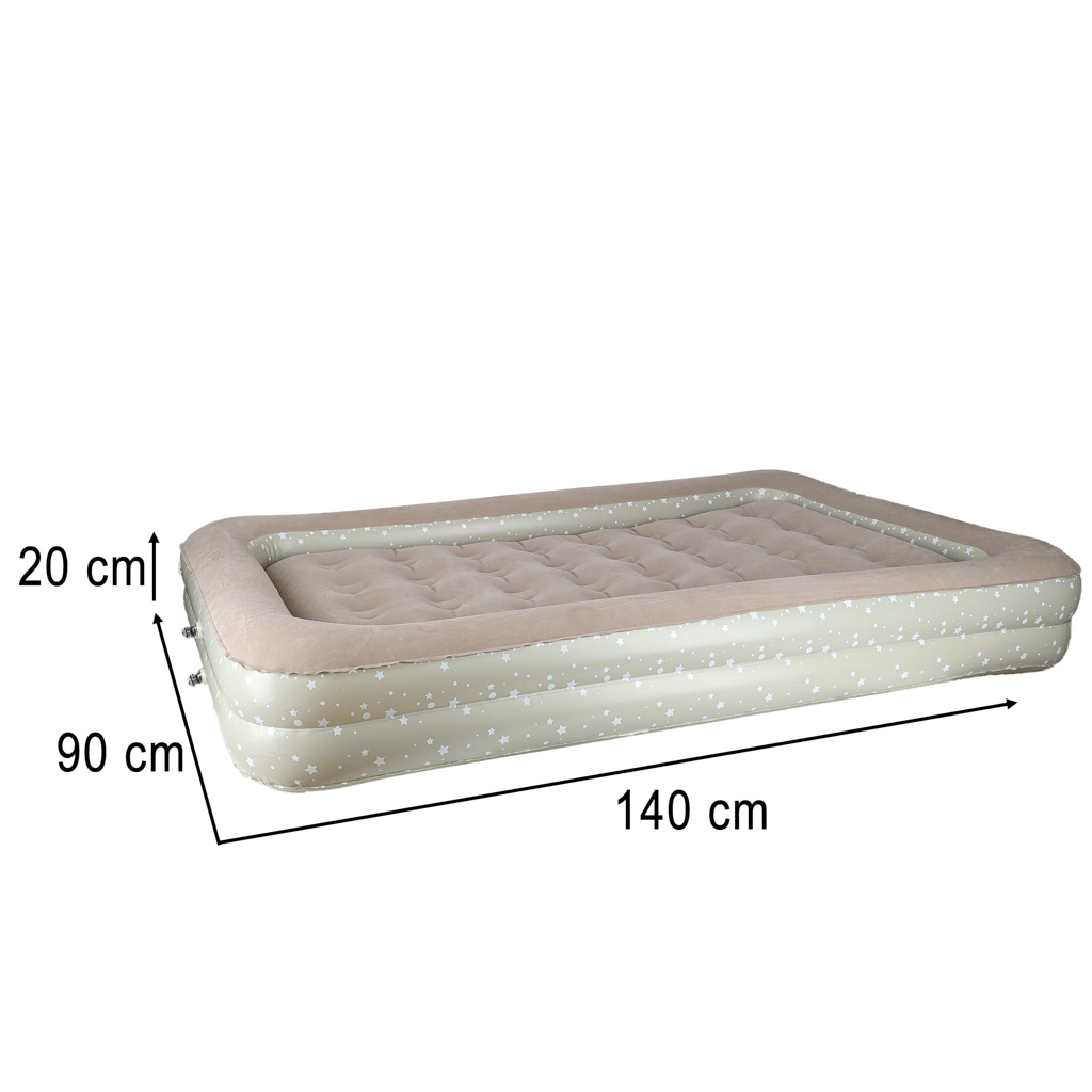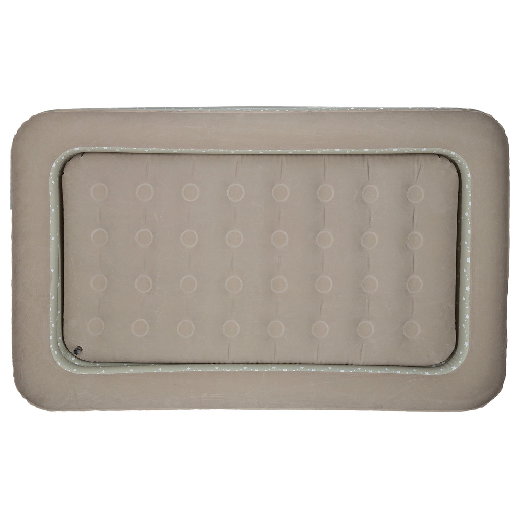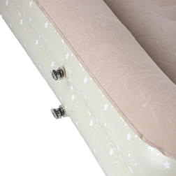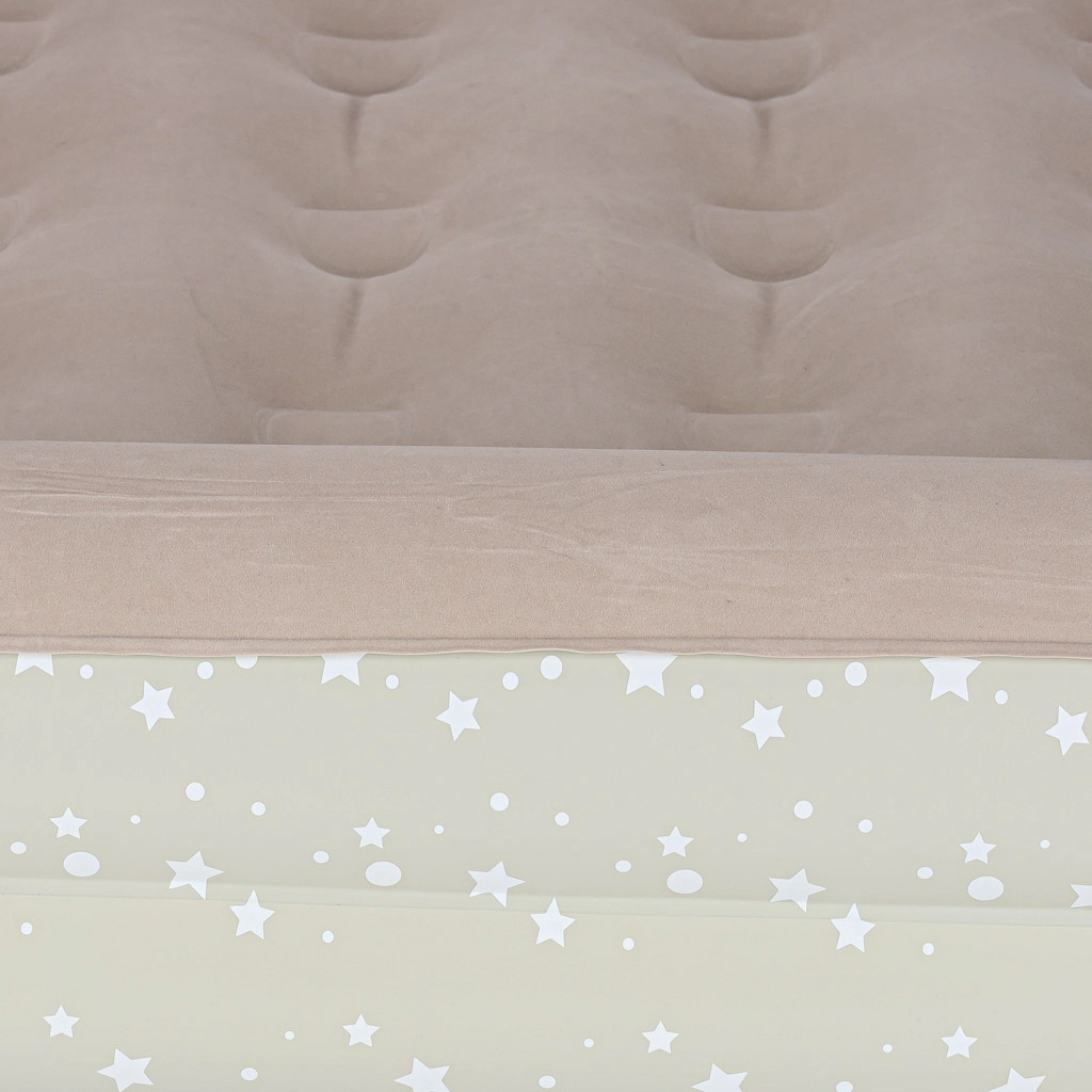 Sukurkite vaikams patogią ir saugią poilsio erdvę bet kur – ši dviejų dalių vaikiška pripučiama lova sujungia išorinį rėmą su paaukštintais kraštais ir išimamą vidinį čiužinį. Minkštas veliūrinis paviršius yra malonus liesti ir neleidžia slysti patalynei. Elegantiškas žvaigždučių raštas suteikia lovai žaismingą išvaizdą.