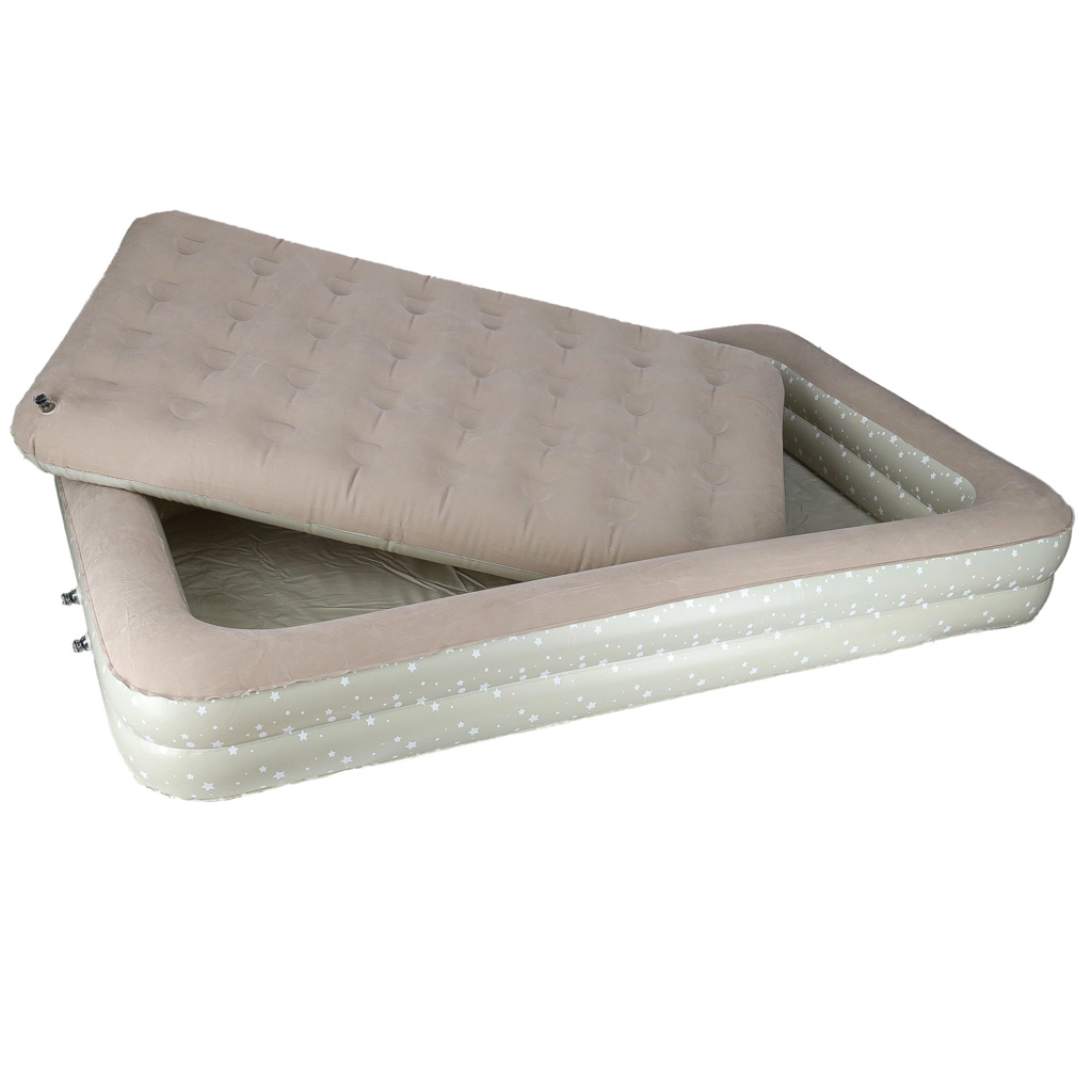 Išorinis pripučiamas rėmas su paaukštintomis sienelėmis laiko vaiką lovos viduryje ir neleidžia nuslysti miego metu. Idealu ramiam nakties poilsiui namuose ir kelionėse.