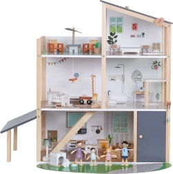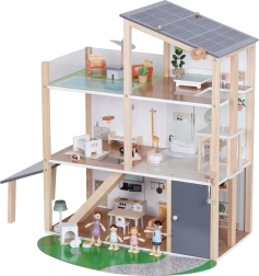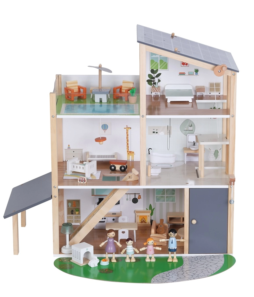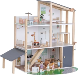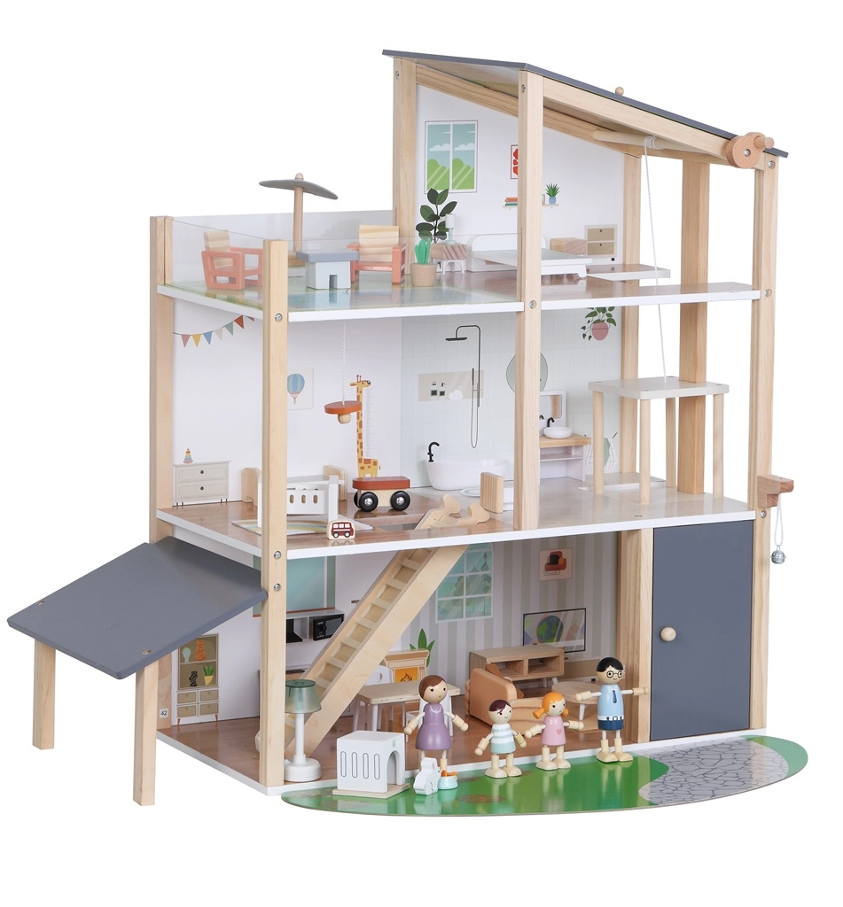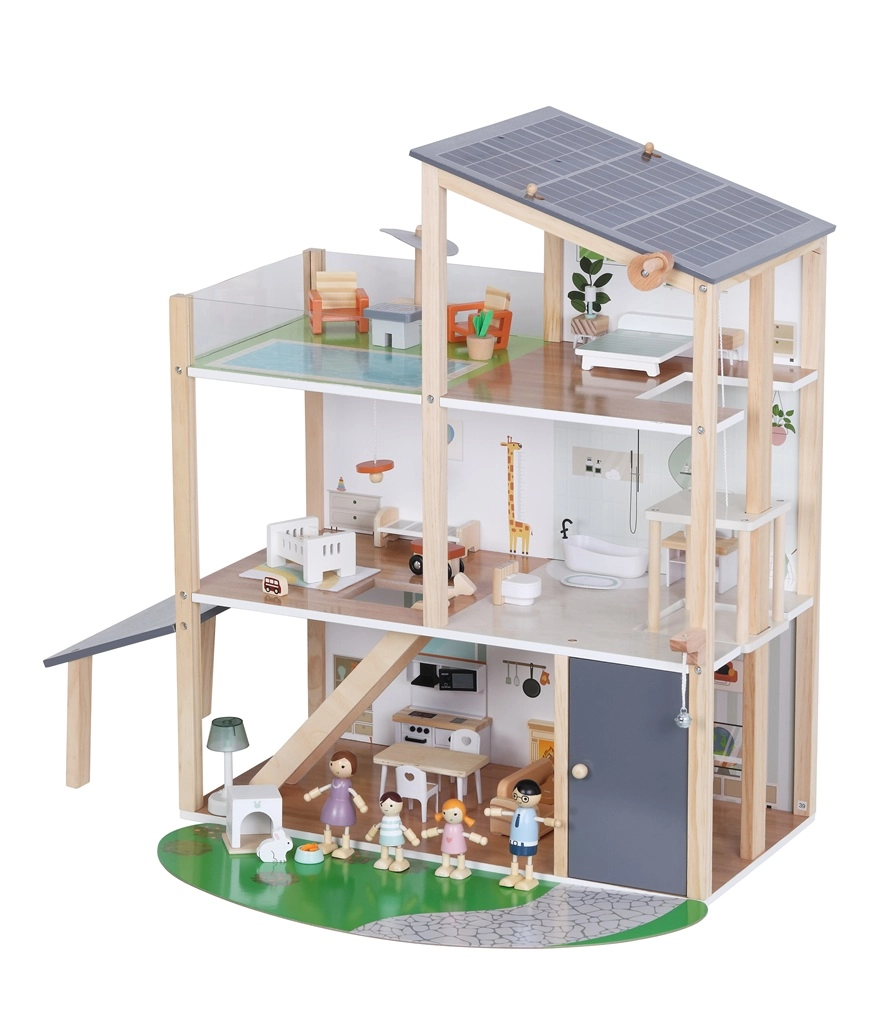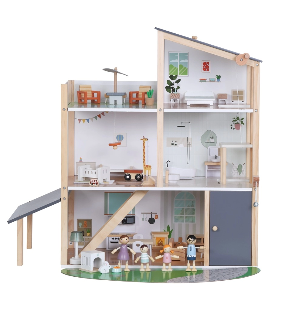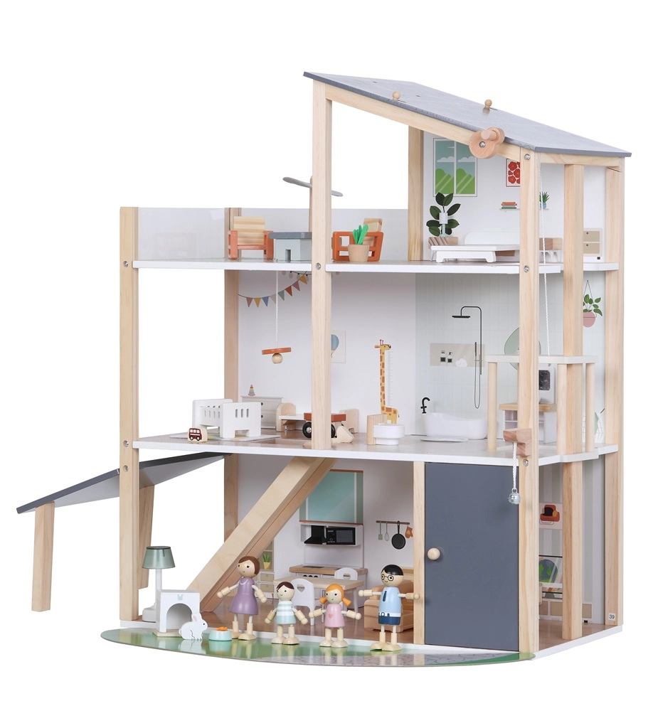 Rinkinyje yra 41 dalis, įskaitant baldus, keturias šeimos figūrėles, naminių gyvūnėlių triušiuką su nuosavu namelyje ir funkcinį liftą – tereikia pasukti rankenėlę ir galite pakelti šeimyną į aukštesnius aukštus. Atvira konstrukcija skatina natūralią sąveiką, socialinių įgūdžių bei smulkiosios motorikos lavinimą.