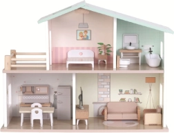 Su 16 detaliai apdorotų baldų dalių vaikai gali laisvai perstatyti interjerą ir kurti savo istorijas. Tvirta medinė konstrukcija ir kokybiška apdaila užtikrina ilgą tarnavimo laiką ir saugų žaidimą.