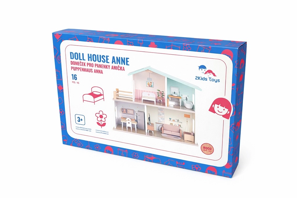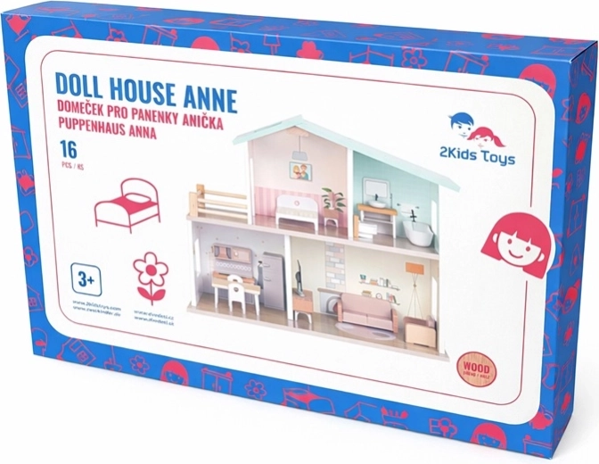 Atraskite gražų medinį lėlių namelį „Anička“ iš 2Kids Toys su dviem aukštais, balkonu ir pilnai įrengtais kambariais. Dėl 16 baldų ir priedų dalių vaikai mėgausis valandomis kūrybinio vaidmenų žaidimo, ugdys vaizduotę ir socialinius įgūdžius. Kokybiškas medinis apdirbimas, švelnios spalvos ir stabili konstrukcija paverčia jį žaviu vaikų kambario akcentu. Pridedamas surinkimo vadovas; namelis pristatomas neišrinktas. Tinka nuo 3 metų.