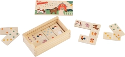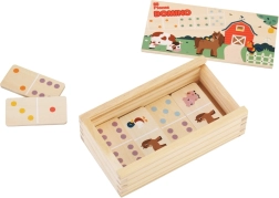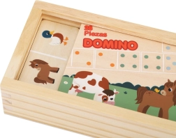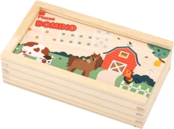 Atraskite dvisluoksnio medinio fermos domino žavesį, kuris siūlo du pramogos būdus viename žaidime. Mažesni vaikai dėlioja pagal linksmus gyvūnėlių paveikslėlius, vyresni gali žaisti klasikinį taškuotą dominą ir natūraliai lavinti skaičiavimą ir logiką. Aukštos kokybės natūrali mediena, malonios pastelinės spalvos ir praktiška medinė dėžutė su dangteliu paverčia jį gražiu ir patvariu žaislu vaikams nuo 2 metų.