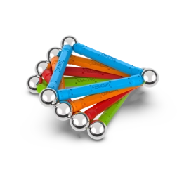 Tvirtos plastikinės lazdelės ir blizgūs metaliniai rutuliukai patikimai susijungia dėl magnetų. Konstrukcijos yra stabilios ir lengvai perdaromos.