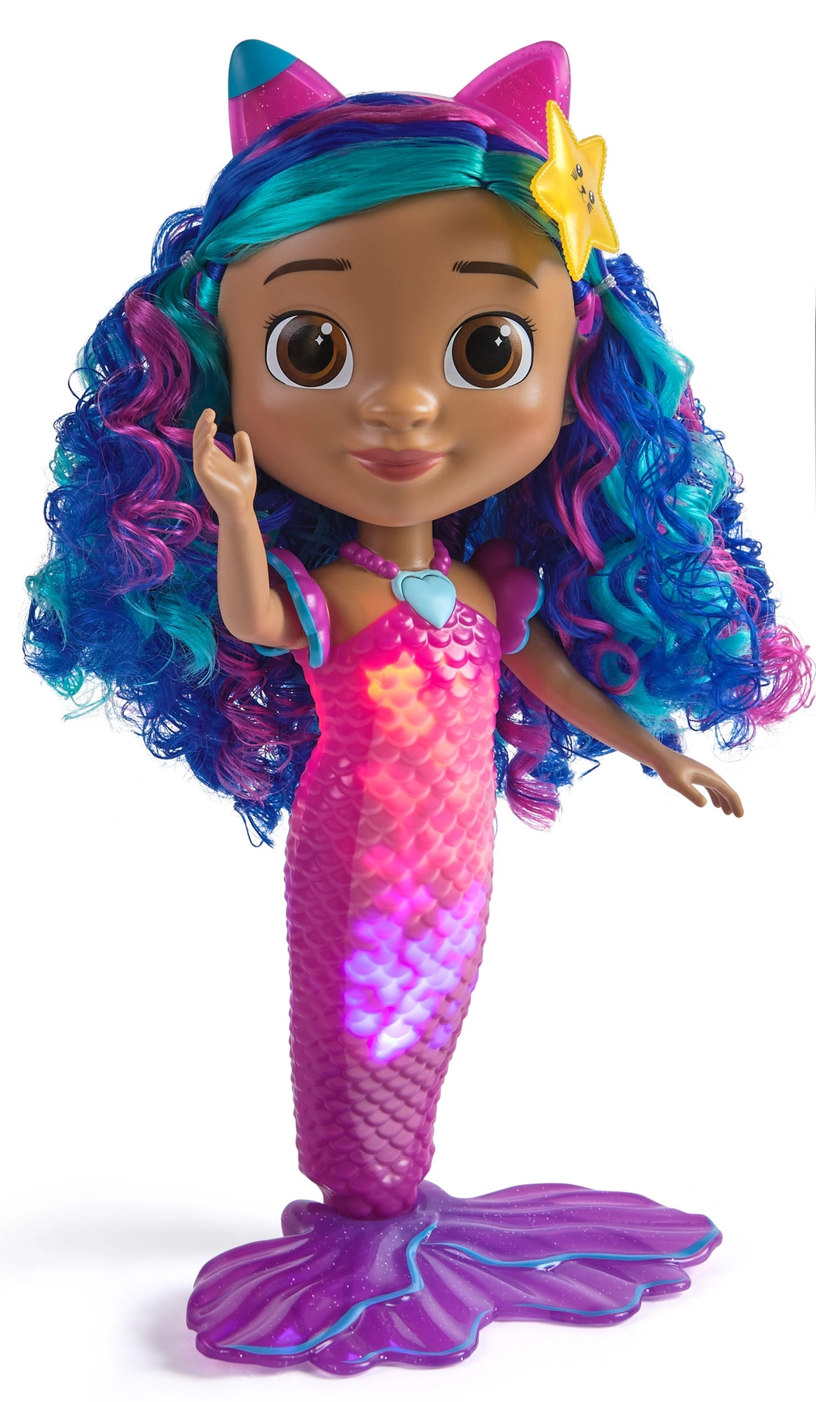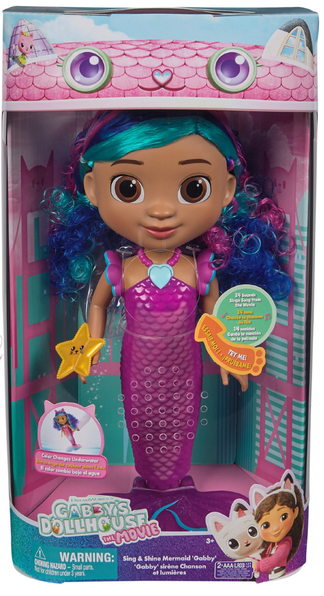 Atskleiskite magiją su lėle Undinėlė Gabija, įkvėpta filmo Gabijos stebuklingas namelis. Ši didelė, apie 35 cm lėlė siūlo šviesos efektus uodegoje, net 14 garsų ir frazių, įsijungiančių paspaudus širdelės formos vėrinį, ir yra atspari vandeniui, tad tinka žaisti vonioje ar prie baseino. Dėl ryškių spalvotų plaukų, stilingų aksesuarų ir rinkinyje esančių baterijų ji iškart pasirengusi magiškiems nuotykiams.