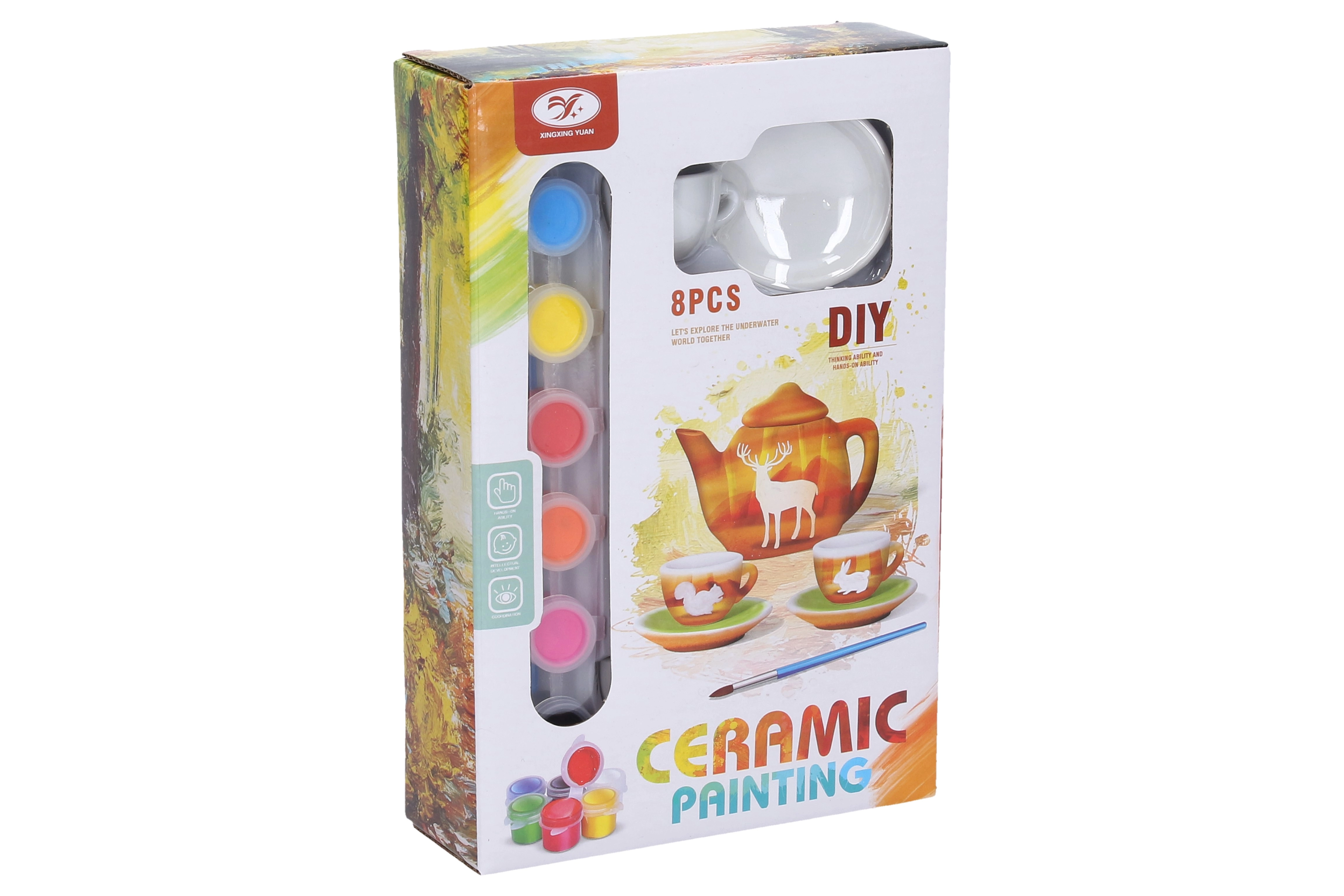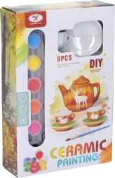 - Arbatinukas su dangteliu, 2 puodeliai, 2 lėkštutės, 6 spalvų rinkinys, teptukas
