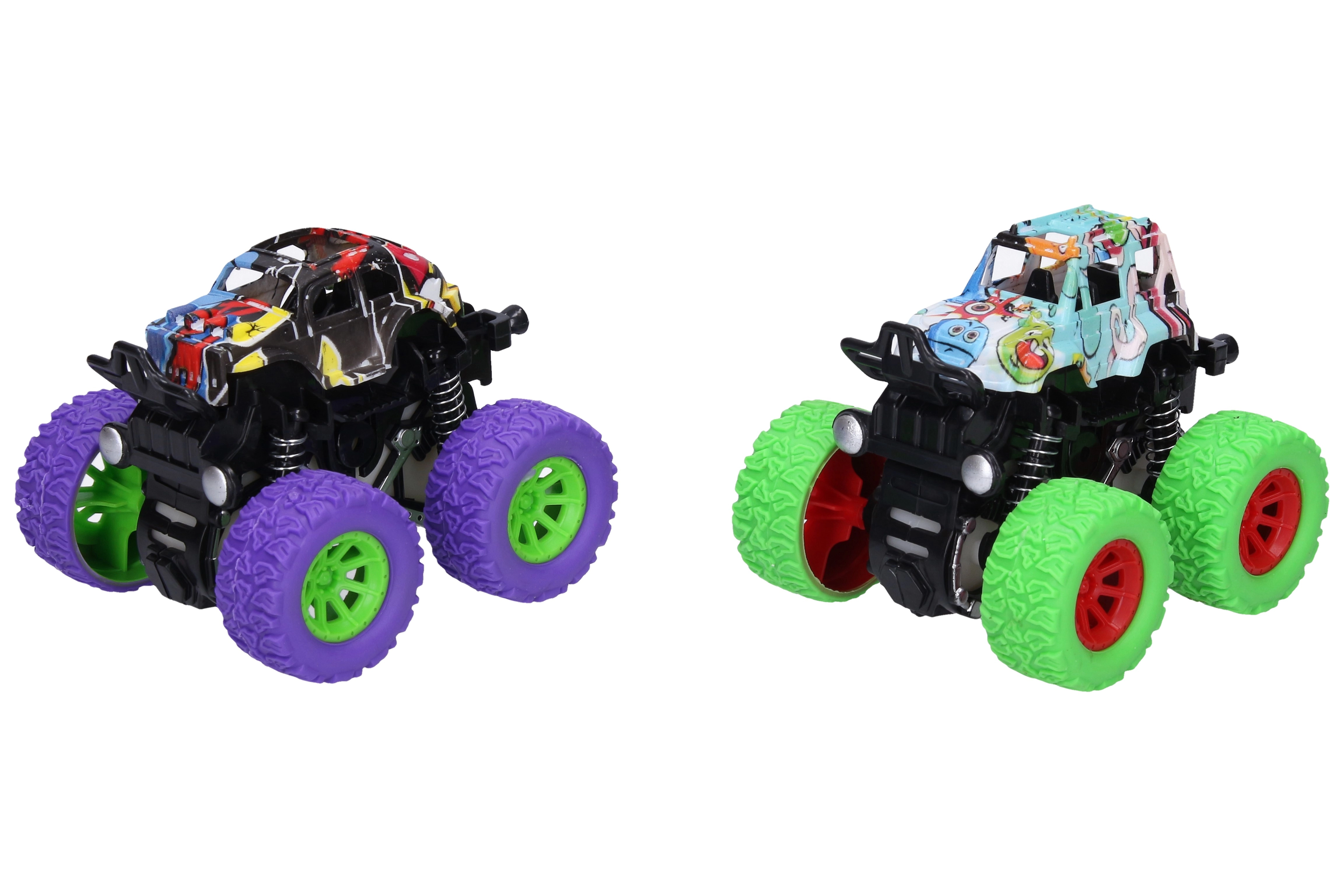 Šie apie 9 cm dydžio bekelės automobiliai su frikcine (inercine) pavara – tiesiog užtempkite ir paleiskite, ir jie šaus pirmyn dideliu greičiu. Stilingi kėbulai su grafičių motyvais įvairių spalvų variantuose traukia akį ir skatina kūrybišką žaidimą.