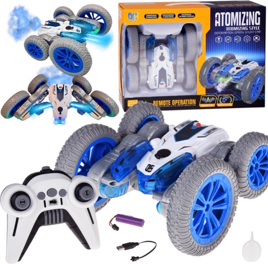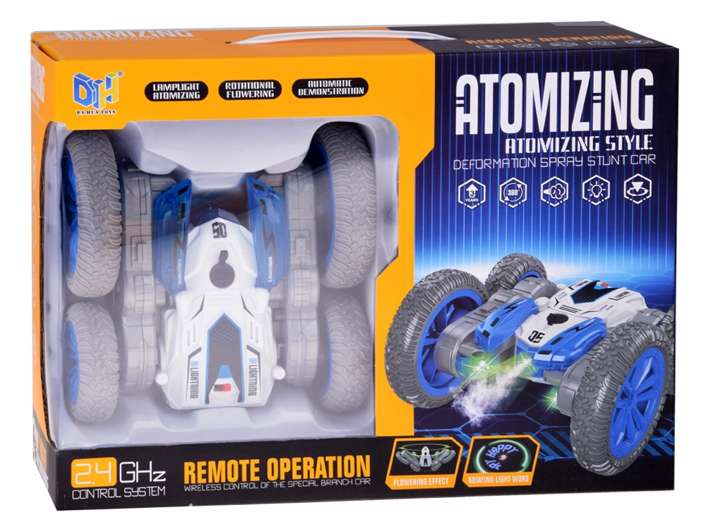 Atraskite neribotą pramogą su šiuo itin greitu kaskadiniu RC automobiliu, kuris gali važiuoti abiem pusėmis, atlikti 360° apsisukimus, driftuoti ir kurti vandens garų efektą su LED apšvietimu. Dėl gumininių neslystančių ratų jis saugus grindims ir lengvai valdomas net pradedantiesiems.