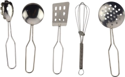 Vaikiškas metalinis virtuvės rinkinys patogioje skaidrioje kuprinėje pradžiugins mažus virėjus realistiška išvaizda ir garsu. Jame yra viskas, ko reikia vaidybiniam gaminimui – puodai, keptuvė, kiaurasamtis, šluotelė ir virtuvės įrankiai, be to, pirštinė ir rankšluostis. Patvari metalinė konstrukcija skatina kūrybiškumą, smulkiąją motoriką ir mokymąsi per žaidimą namuose ir kelionėse.