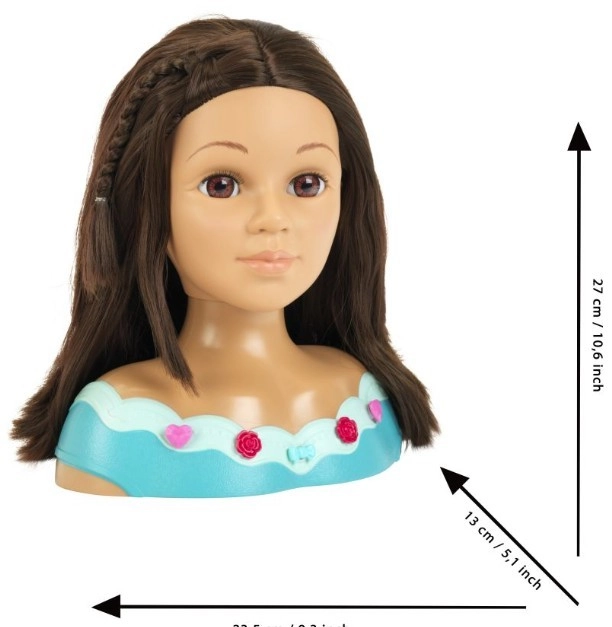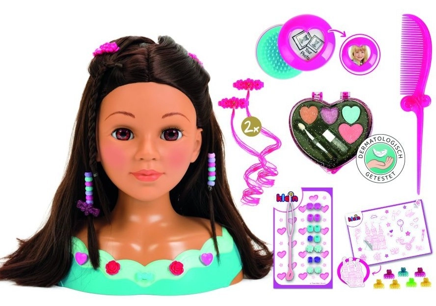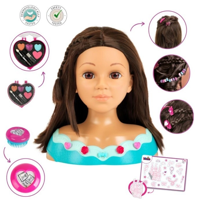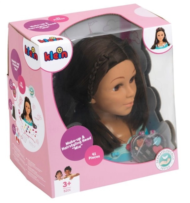Šukavimo ir makiažo galva Mia siūlo viską, ko reikia mažiesiems kirpėjams ir visažistams. Ilgus, plaunamus plaukus galima šukuoti, šepetuoti, pinti ir puošti segtukais ar karoliukais. Pridėta vaikų kosmetika yra dermatologų patikrinta, todėl saugi žaidimams ir švelniai vaikų odai.