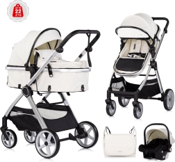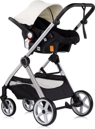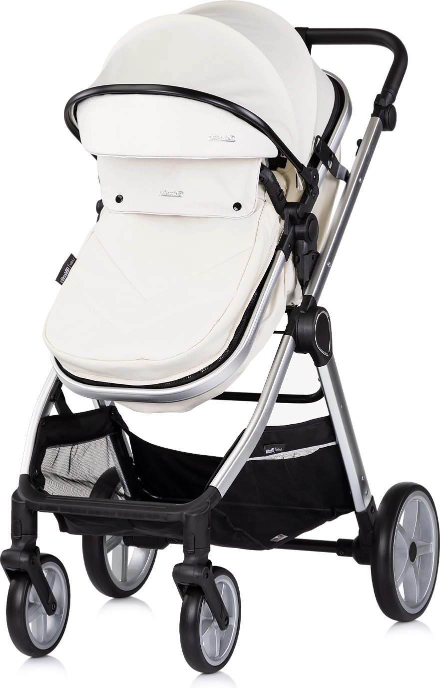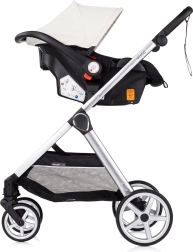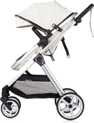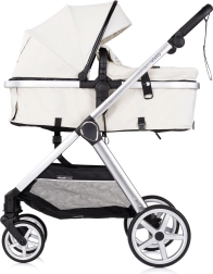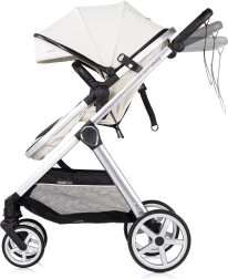 Elegantiškas ir praktiškas 2v1 vežimėlis naujagimiams ir mažyliams su lengvu aliuminio rėmu, pasukamu sėdimos dalies moduliu (važiavimo kryptimi ir prieš ją) ir galimybe paversti į gulimą lopšį. Siūlo pilną visų ratų amortizaciją, aukščio reguliuojamą rankeną su saugos dirželiu, reguliuojamą stogelį su saulės skydeliu ir langeliu bei erdvų krepšį. Komplekte yra paminkštintas užklotas kojoms ir sauskelnių krepšys.