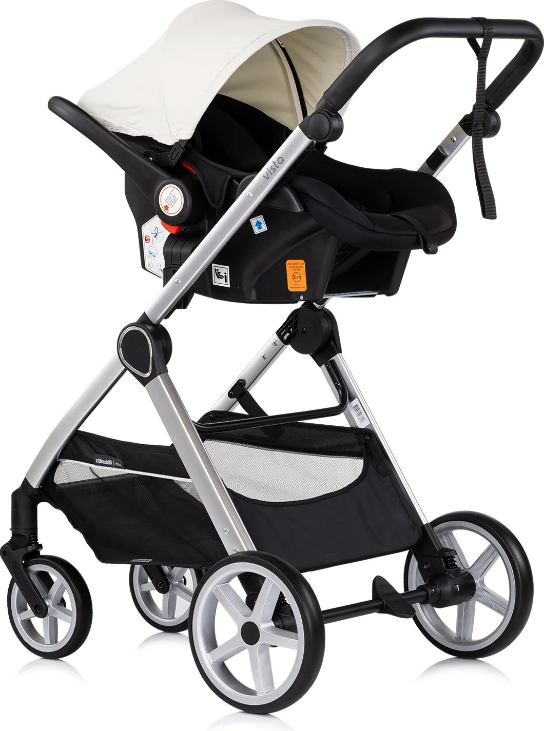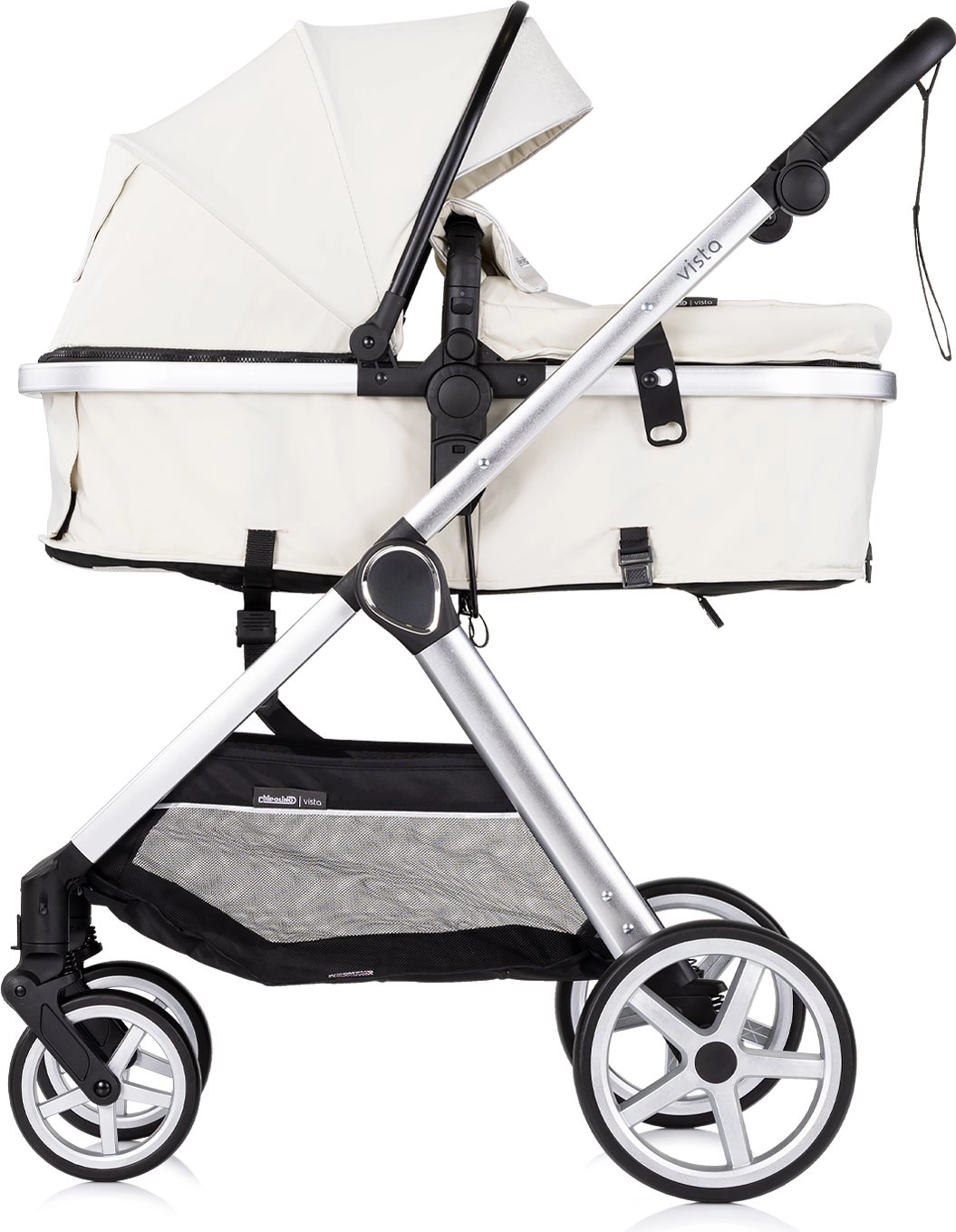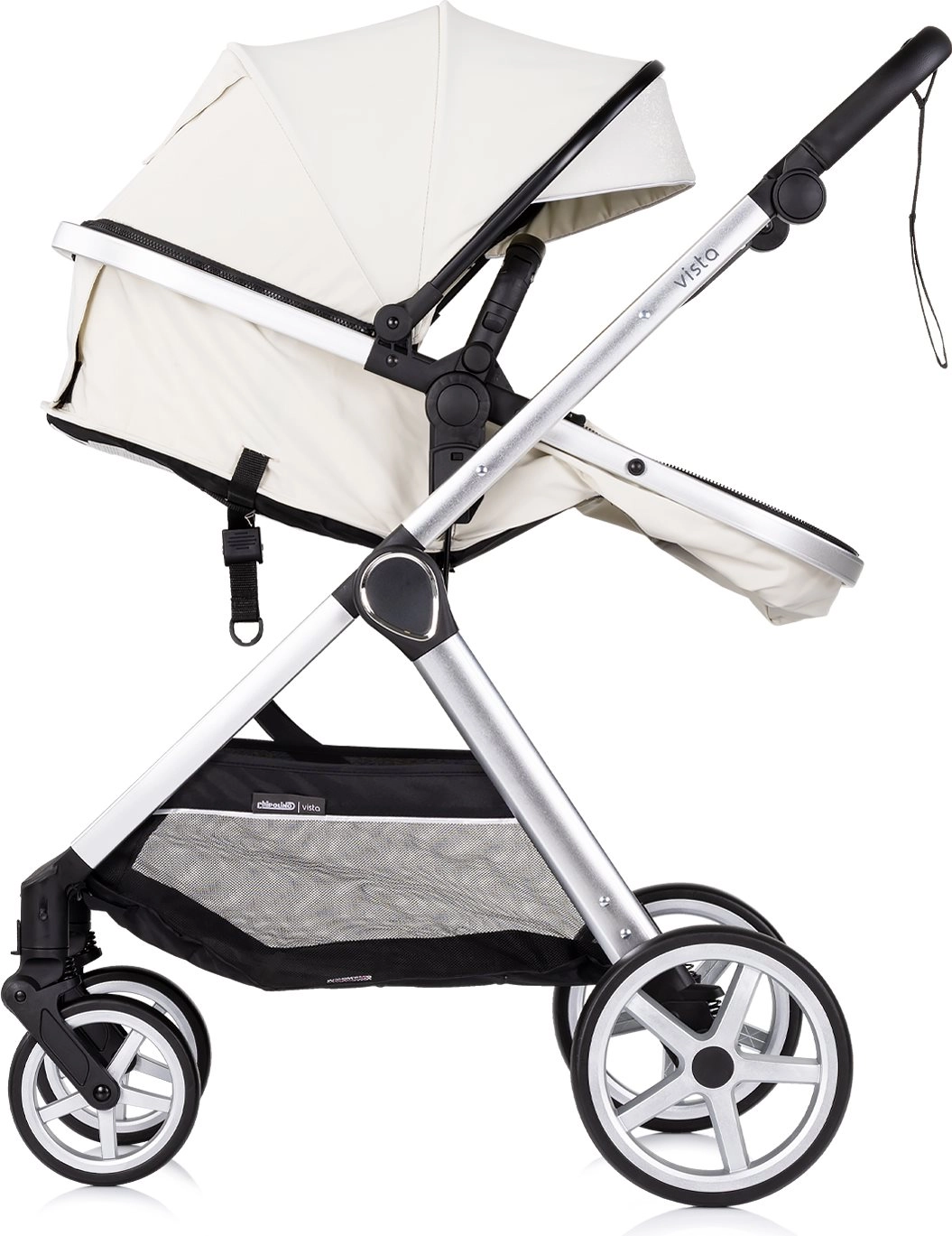 CHIPOLINO Vista 2v1 Biscotta – stilingas kombinuotas vežimėlis, lengvai prisitaikantis prie kasdienių tėvų poreikių. Sėdimąjį modulį akimirksniu paversite patogiu lopšiu naujagimiui, o galimybė tvirtinti važiavimo kryptimi arba prieš ją užtikrina ir komfortą, ir artimą kontaktą su vaiku.