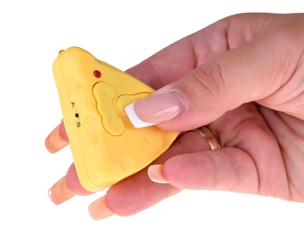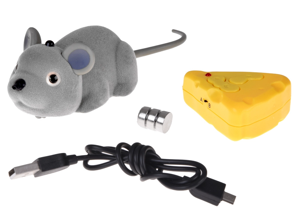 Komplekte yra sūrio formos pultelis su intuityviu valdymu – važiavimas pirmyn/atgal, posūkiai dešinėn/kairėn ir specialus ratukas sklandžiam lankui. Pakuotėje taip pat rasite USB įkrovimo laidą ir baterijas, kad pramoga prasidėtų iš karto. Puikiai tinka kaip interaktyvus žaislas katėms ir kaip juokinga dovana draugams.