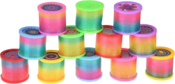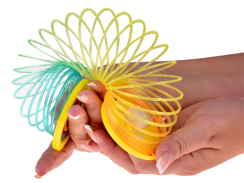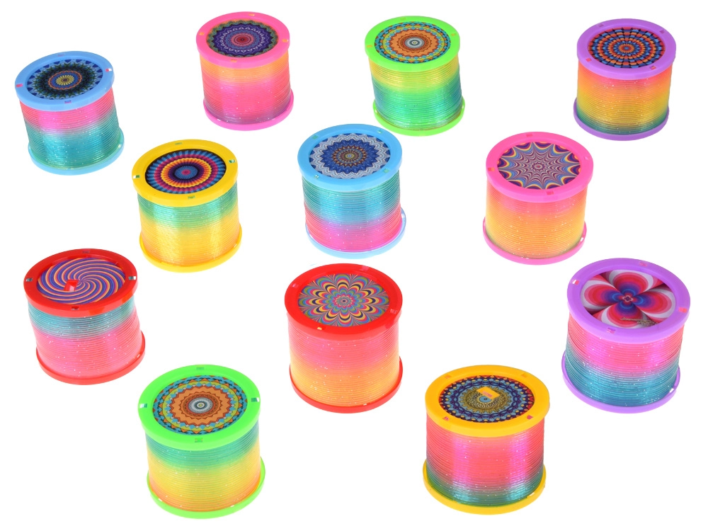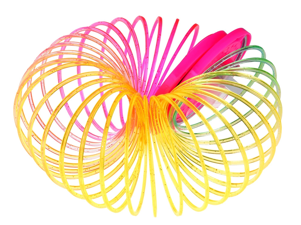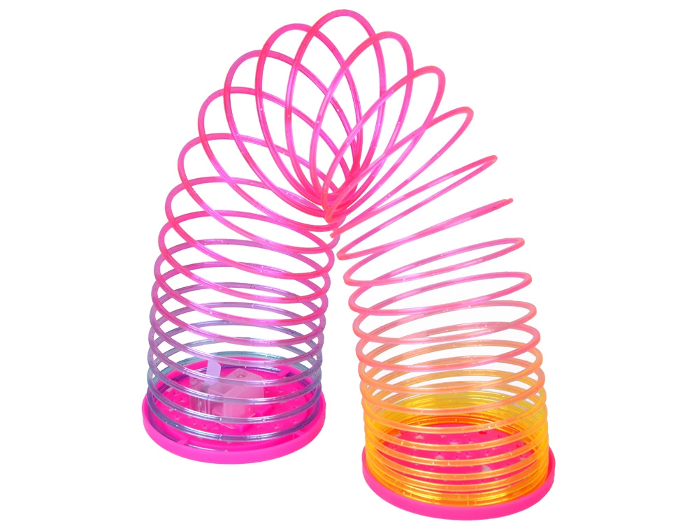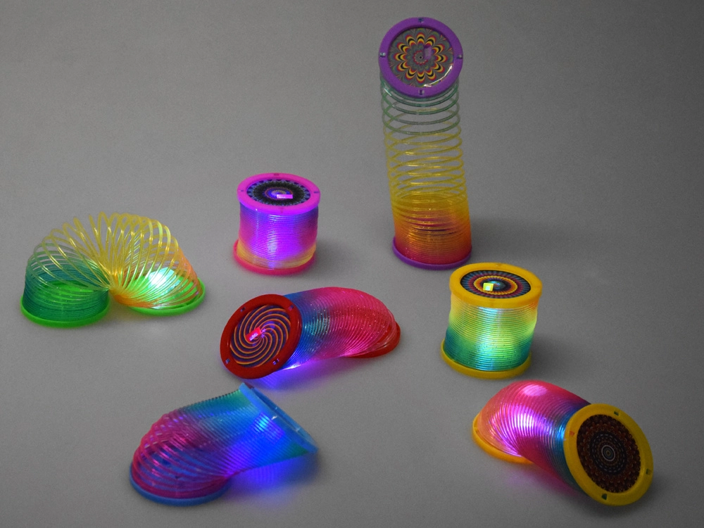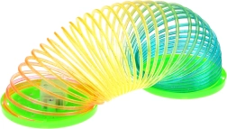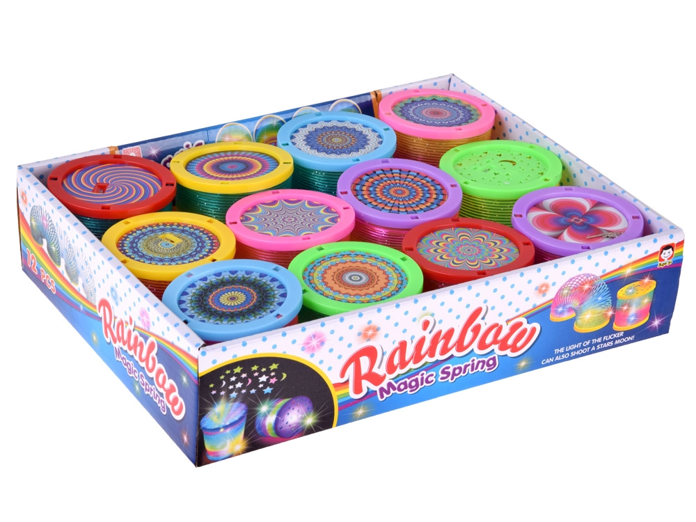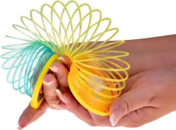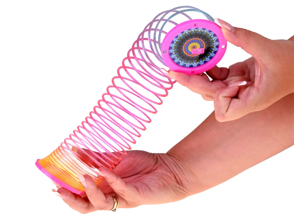 Pamėgta vaivorykštinė spyruoklė sugrįžta šviečiančioje versijoje, kuri sudomins vaikus ir suaugusiuosius. Įjungus LED lemputes, spalvos kinta įvairiais ritmais, o nuėmus apsauginį lipduką ji virsta žvaigždžių projektoriumi – ant sienos išryškėja spalvingos žvaigždės ir mėnulis. Puikiai tinka žaidimams ant laiptų, paprastiems triukams ir poilsiui.