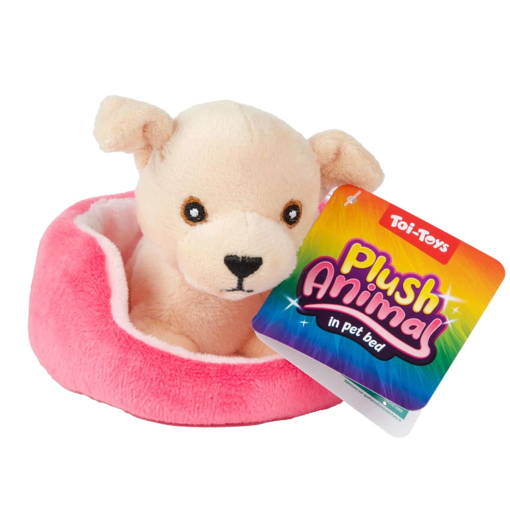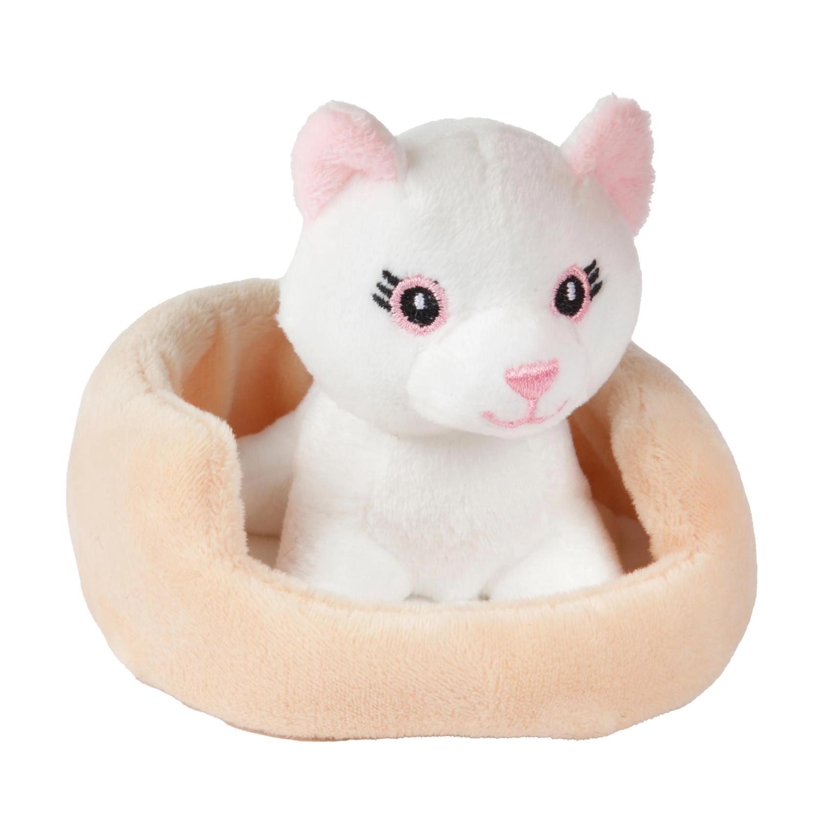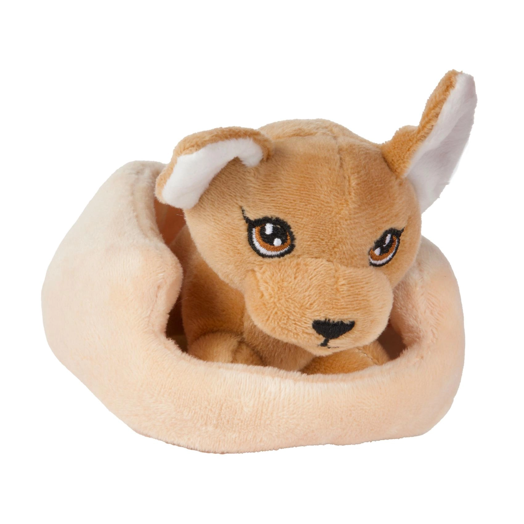 Mielas pliušinis gyvūnėlis minkštame guolyje suteiks vaikams valandų valandas džiaugsmo. Jis yra švelnus liesti, lengvutis ir puikiai tinka glostymui bei žaidimams su augintiniais. Saugus dizainas su išsiuvinėtomis detalėmis be kietų dalių, tinkamas nuo 2 metų.