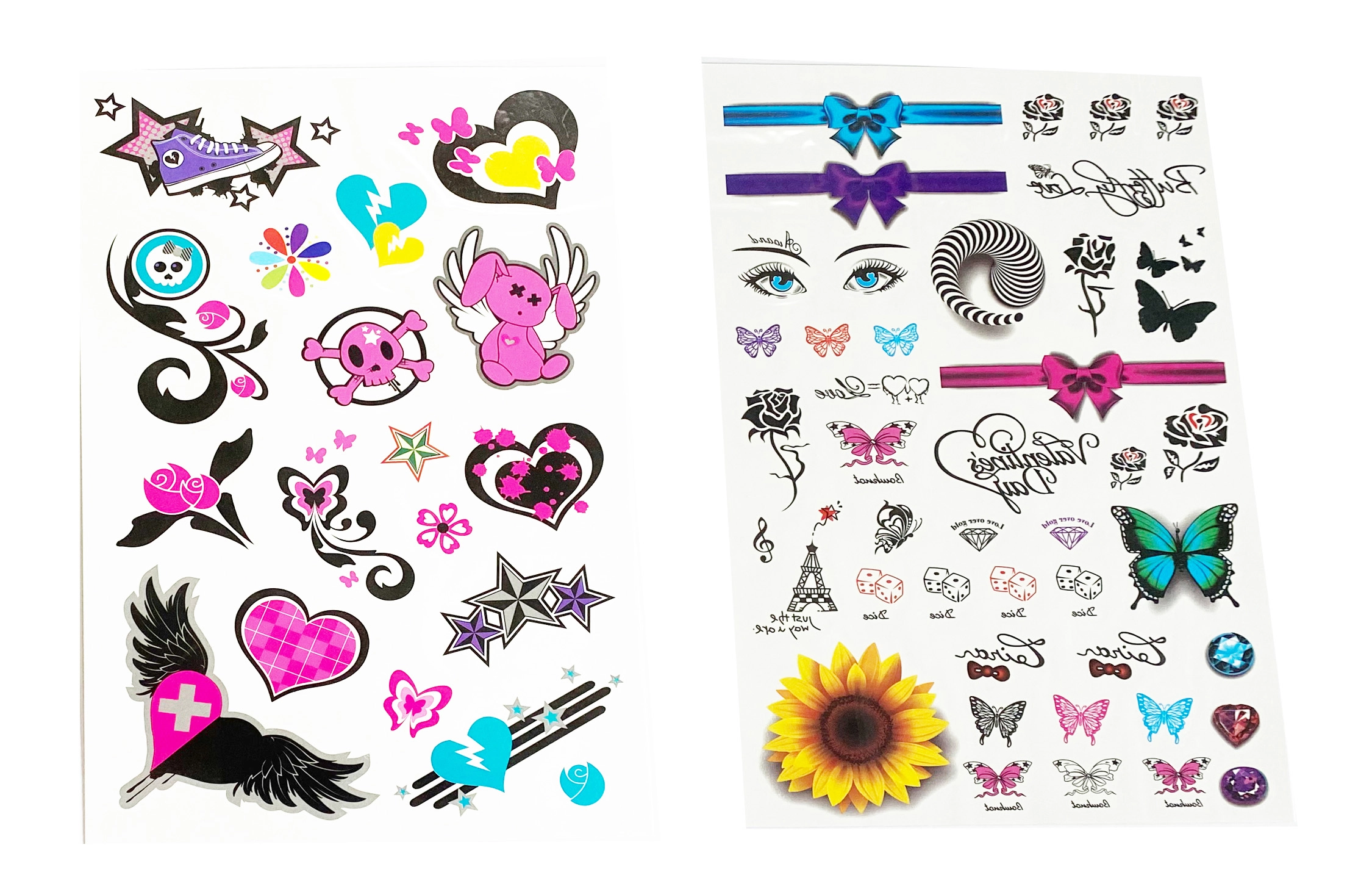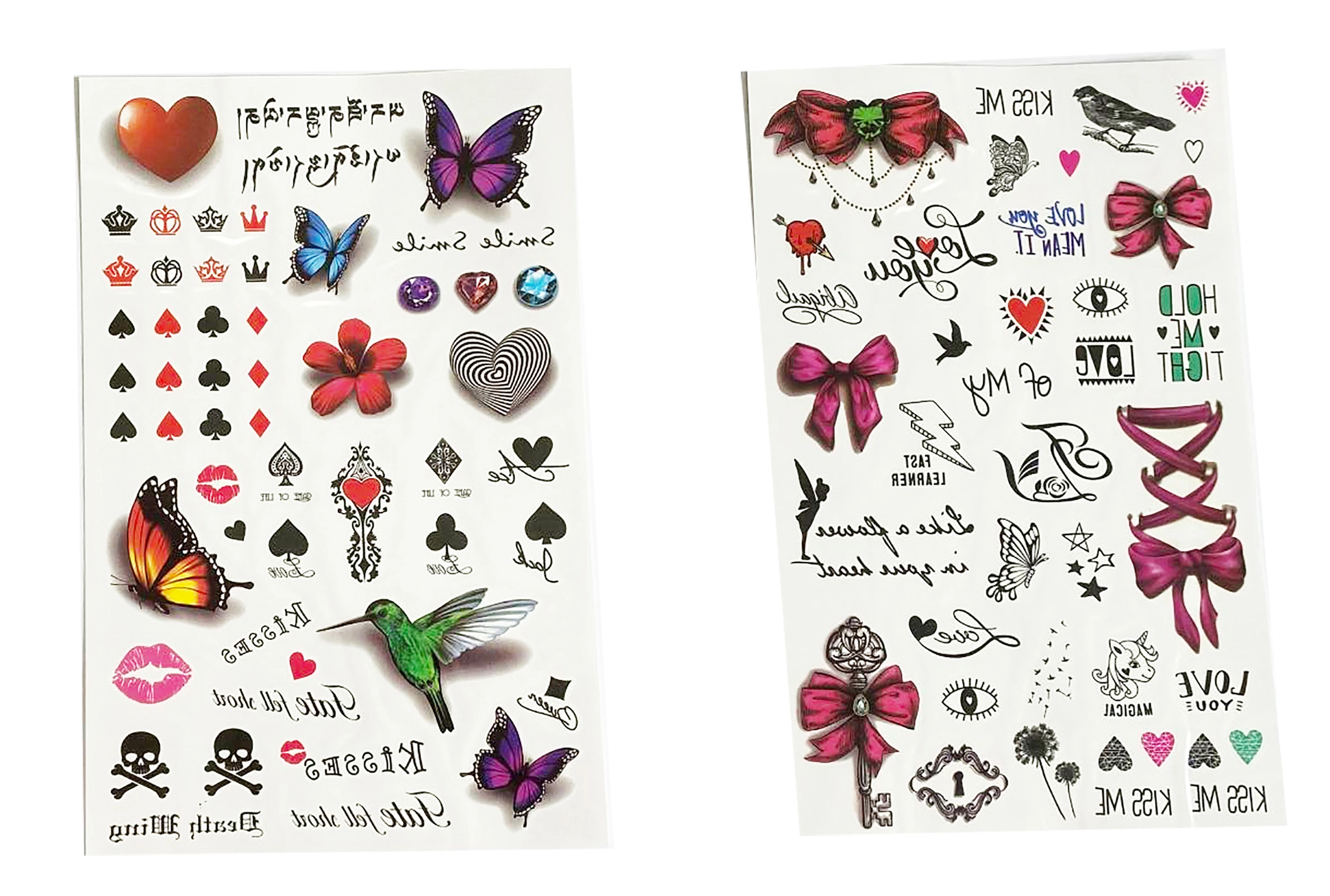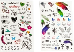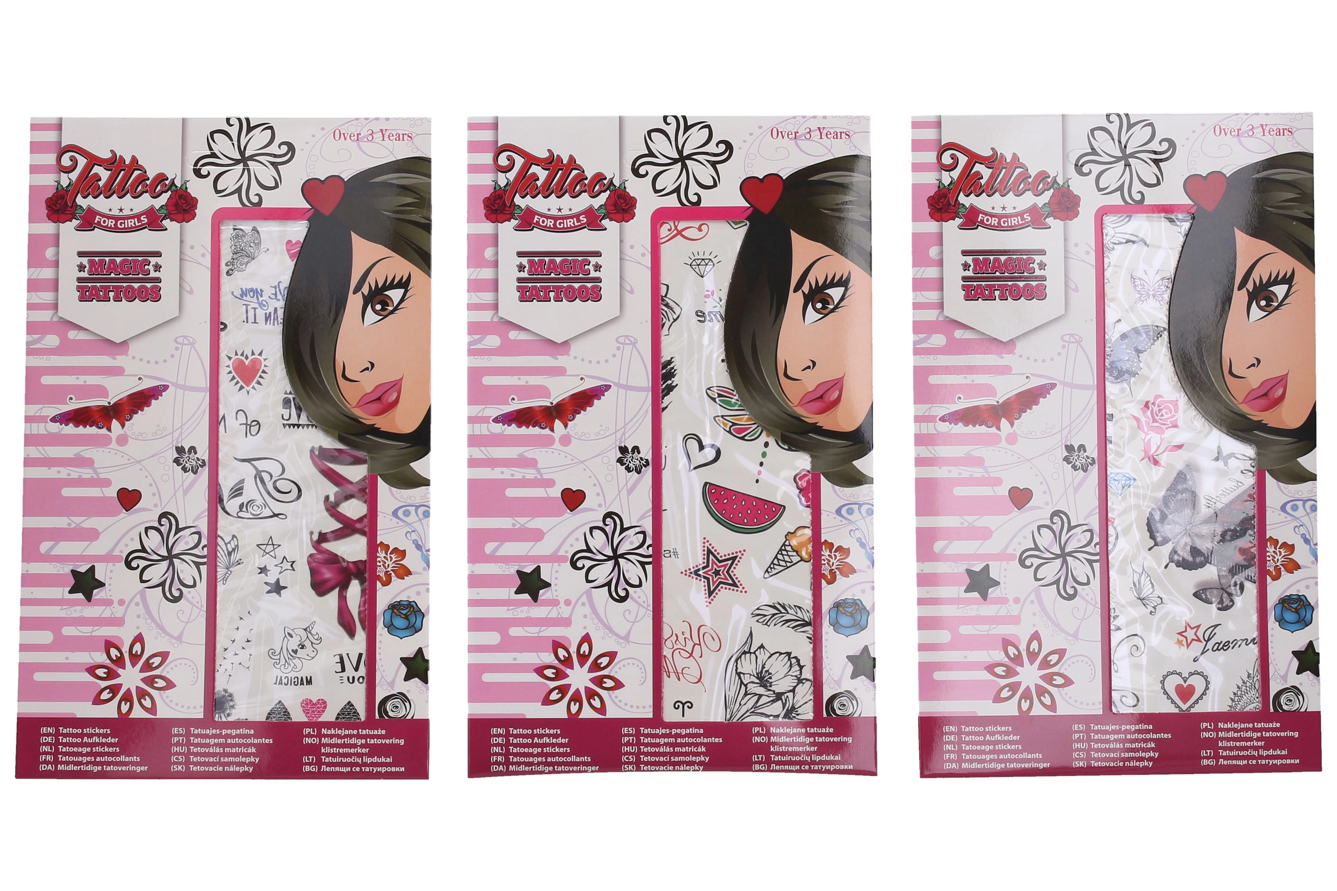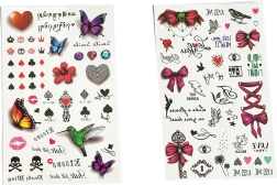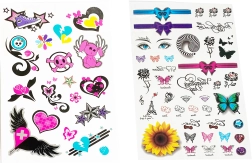 Atraskite spalvingą laikinųjų tatuiruočių mergaitėms pasaulį. Kiekviename lape rasite dešimtis mielų motyvų įvairių dydžių – nuo drugelių ir gėlių iki širdelių, kaspinėlių ir žvaigždučių. Dėl paprastos instrukcijos jas gali užsidėti ir vaikai, prižiūrimi suaugusiųjų. Tatuiruotės idealiai tinka šventėms, karnavalams, dovanoms į šventinius maišelius ir kaip kūrybiška puošmena savaitgaliui.