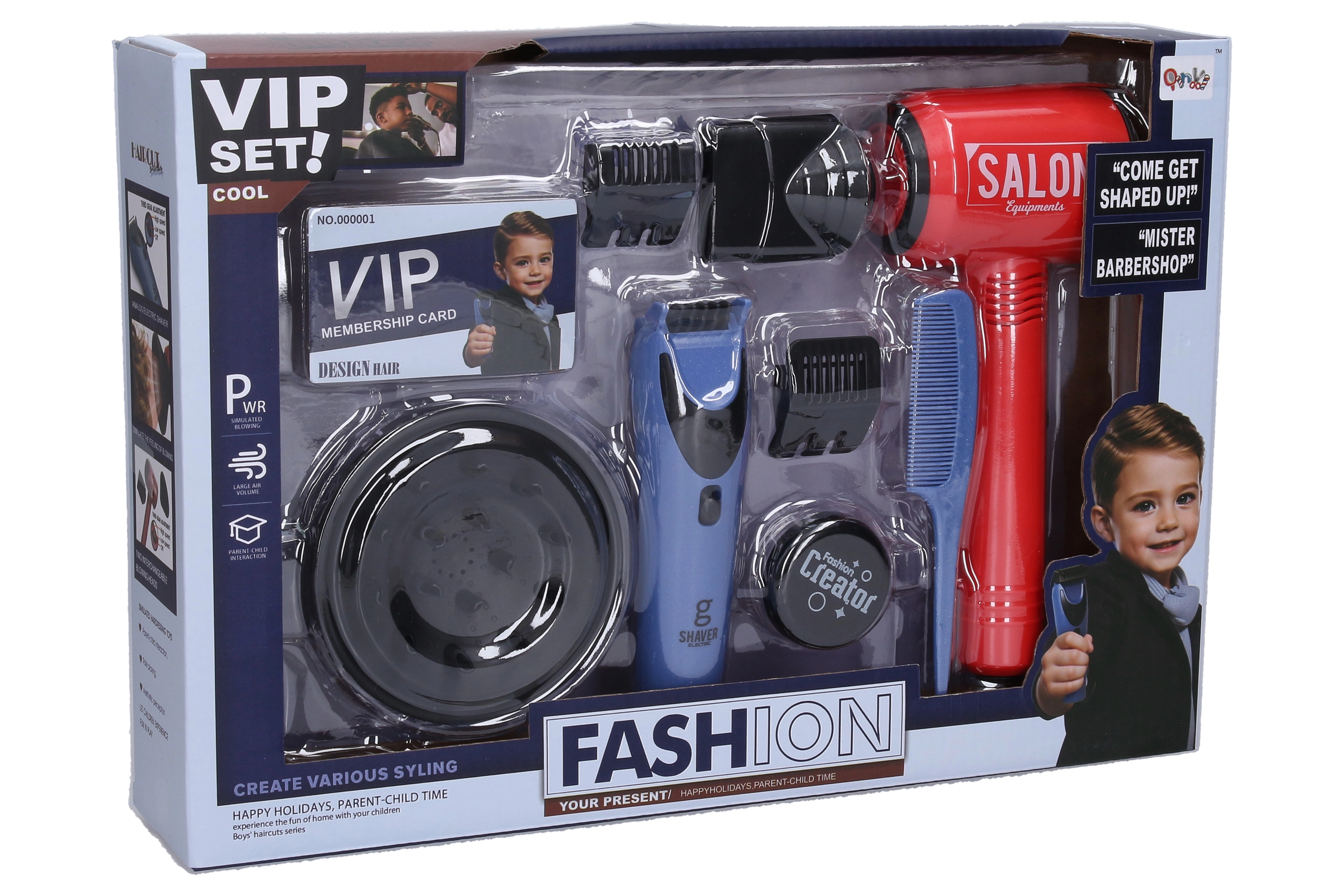 Šis kosmetikos rinkinys berniukams yra puikus pasirinkimas vaikams, kurie mėgsta mėgdžioti suaugusiuosius ir atrasti šukuosenų pasaulį. Dėl veikiančio feno (apie 20 cm) ir realistiškos plaukų kirpimo mašinėlės vaikai mėgausis valandomis saugaus ir kūrybiško žaidimo.