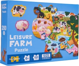 Atraskite fermos žavesį dėliodami 200 dalių dėlionę, kurią užbaigus susiformuoja originalus karvytės formos paveikslas su linksmiais gyvūnais. Du specialūs stoveliukais paremti elementai (avinėlis ir karvytė) gali būti atskirai pastatyti, pavyzdžiui, ant lentynos ar stalo. Kokybiškas, spalvingas atlikimas pradžiugins tiek vaikus, tiek tėvus.