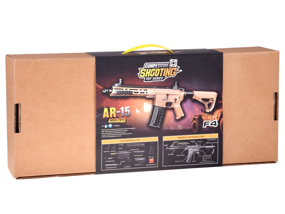 Elektrinis gelinių kamuoliukų šautuvas F4 suteikia dinamiškų pramogų tiek vaikams, tiek suaugusiesiems. Dėl akumuliatoriaus pavaros ir USB įkrovimo juo paprasta ir patogu naudotis. Realistiška išvaizda su taktiniais elementais, nulenkiamais taikikliais ir reguliuojama buože kuria įtraukiantį įspūdį žaidžiant „kareivius“ ar policijos misijas.