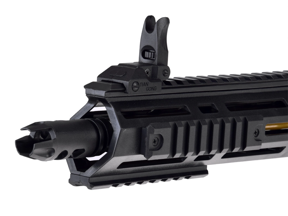 - Realistinės detalės: nulenkiami taikikliai, nuimami priedai, taktinis buožės modulis