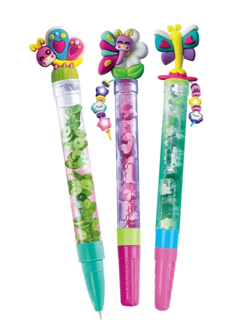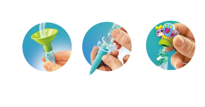 Atraskite linksmą kūrybinį rinkinį, su kuriuo vaikai pasigamins net tris originalius rašiklius su plūduriuojančiais papuošimais. Rinkinyje yra viskas, ko reikia lengvam pildymui – stovas ir piltuvėlis. Skatina kūrybiškumą, smulkiąją motoriką ir suteikia stulbinantį vizualinį efektą – pripildžius vandeniu, papuošimai rašiklio viduje linguoja ir plūduriuoja. Puiki dovana bet kokia proga.