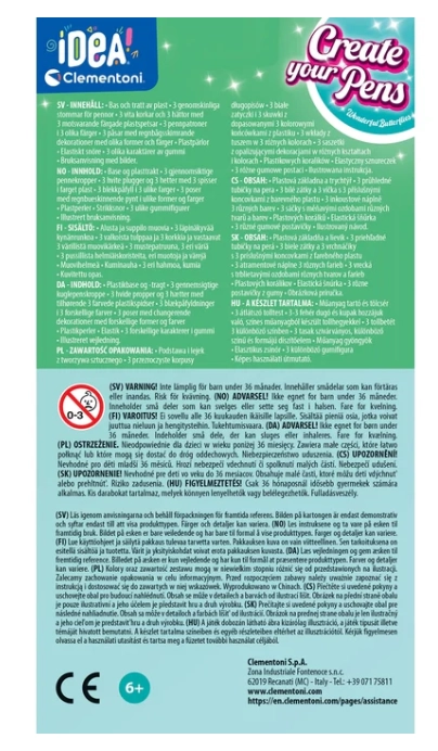 Šis CLEMENTONI IDEA serijos kūrybinis rinkinys leidžia vaikams susikurti 3 unikalius rašiklius su dekoracijomis, kurios plūduriuoja vandenyje. Dėl pridėto stovo ir piltuvėlio pildymas yra paprastas, švarus ir smagus. Rezultatas – efektingas ir pradžiugins kiekvieną mažą kūrėją.