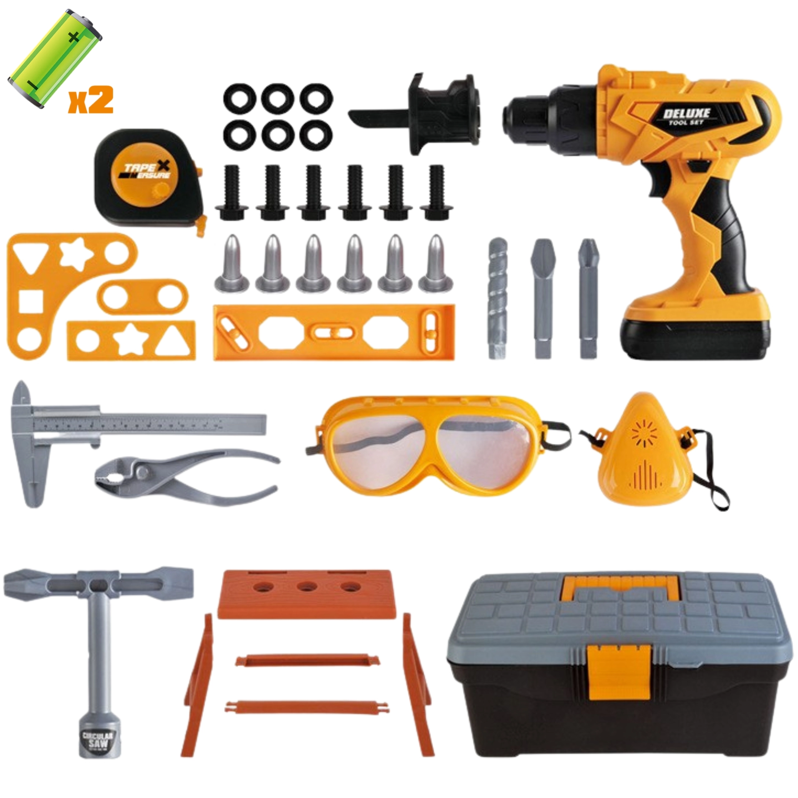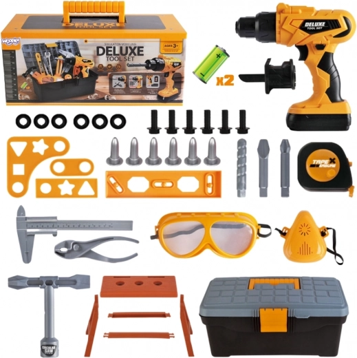 Viskas sudėta į tvirtą lagaminėlį/spintelę įrankiams, kuris palengvina nešiojimą ir tvarką. Taip pat pridedami apsauginiai akiniai, varžtai, veržlės, antgaliai, grąžtas, jungimo plokštelės, mini darbastalis ir kiti įrankiai (raktas, metras, replės). Žaislas skirtas vaikams nuo 3 metų ir lavina rankinius įgūdžius, kūrybiškumą, vaizduotę ir akių-rankų koordinaciją.