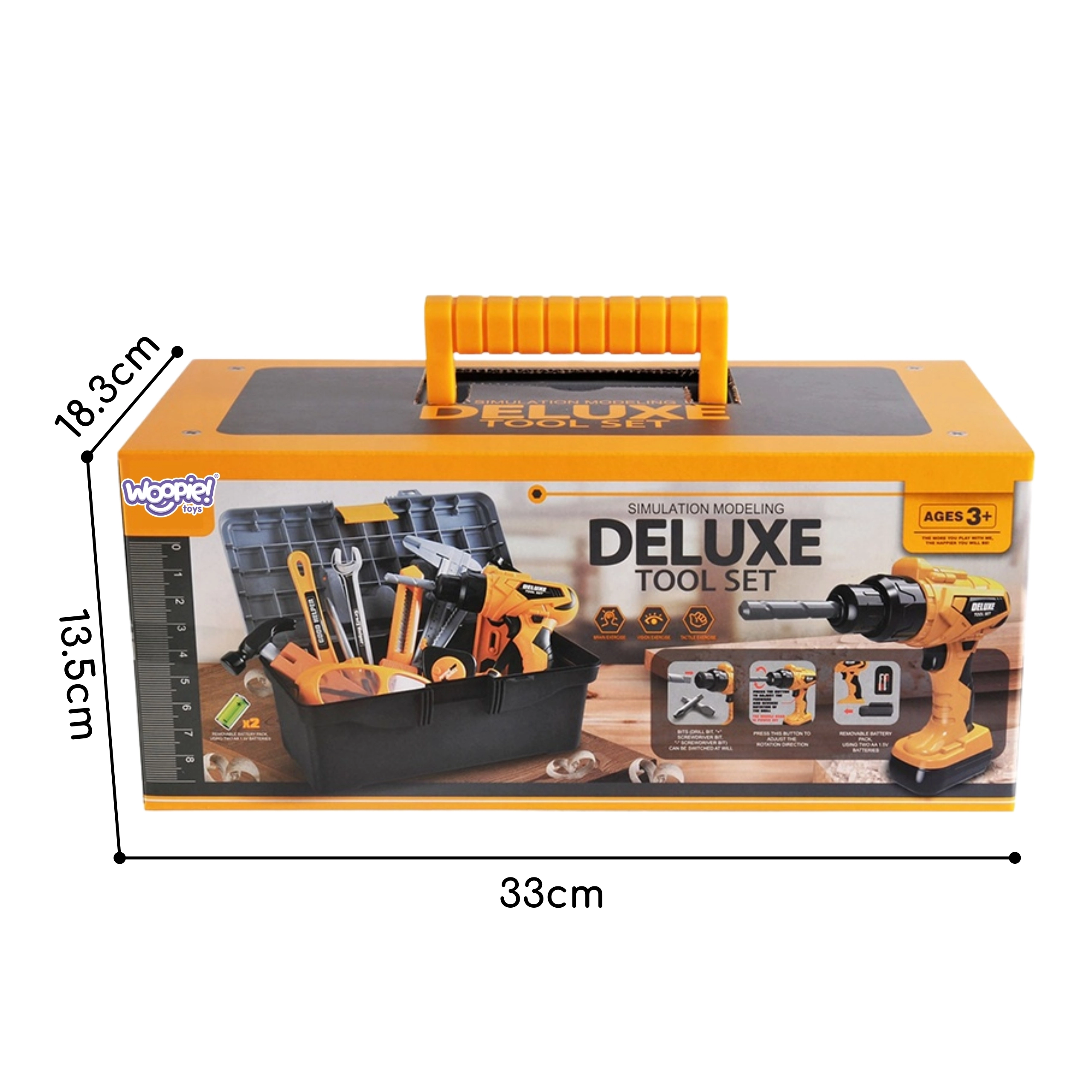 Mažojo meistro įrankių rinkinys Woopie kiekvieną kambarį pavers mini dirbtuvėmis. Vaikai gali mėgdžioti suaugusiuosius, sukti varžtus, gręžti ir konstruoti naudodamiesi gausia priedų komplektacija. Elektrinis akumuliatorinis gręžtuvas su sukimosi krypties keitimo funkcija ir keičiamais antgaliais (įskaitant „siaurapjūklio“ tipo antgalį ir antgalių laikiklį) suteikia žaidimui autentiškumo.