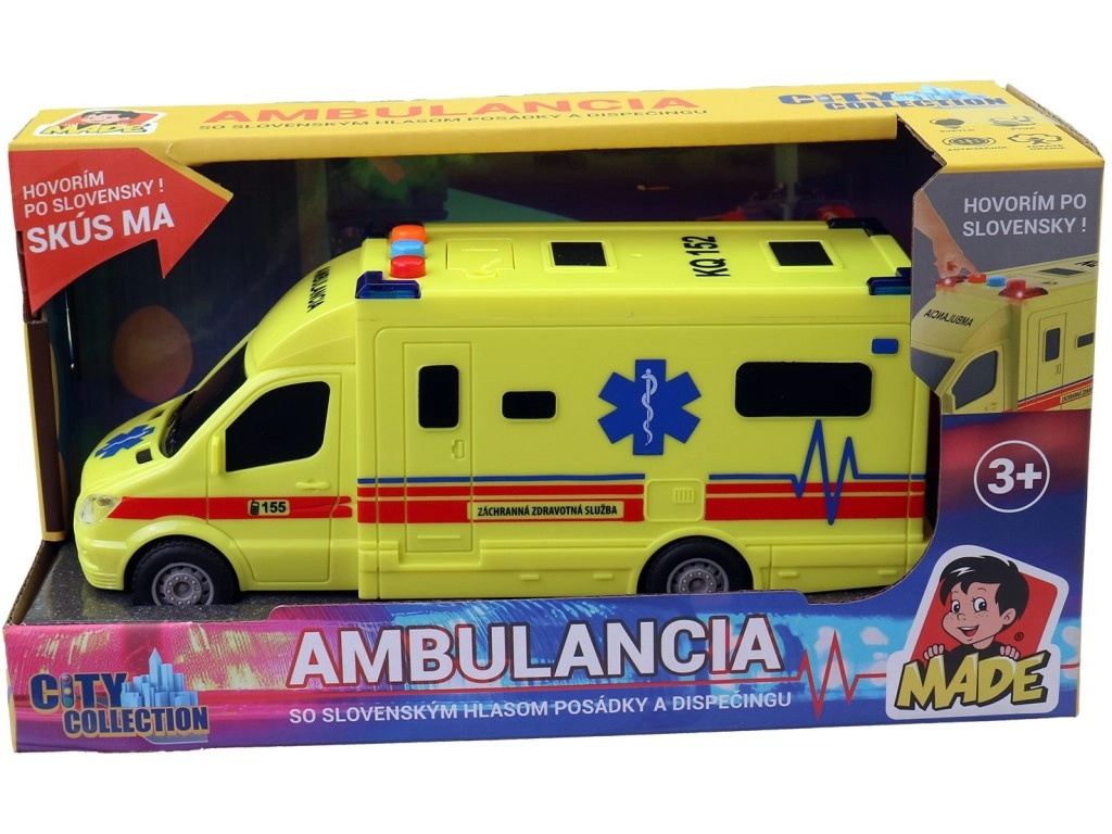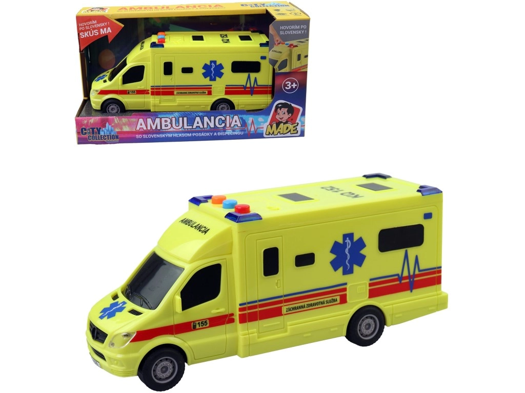 Interaktyvus inercinis greitosios pagalbos automobilis pradžiugins kiekvieną mažą vairuotoją nuo 3 metų. Jis siūlo realistiškus šviesos ir garso efektus, paprastą valdymą ir pagamintas iš patvaraus plastiko, užtikrinančio saugų žaidimą. AG13 baterijos įtrauktos, todėl pramogos gali prasidėti iš karto.