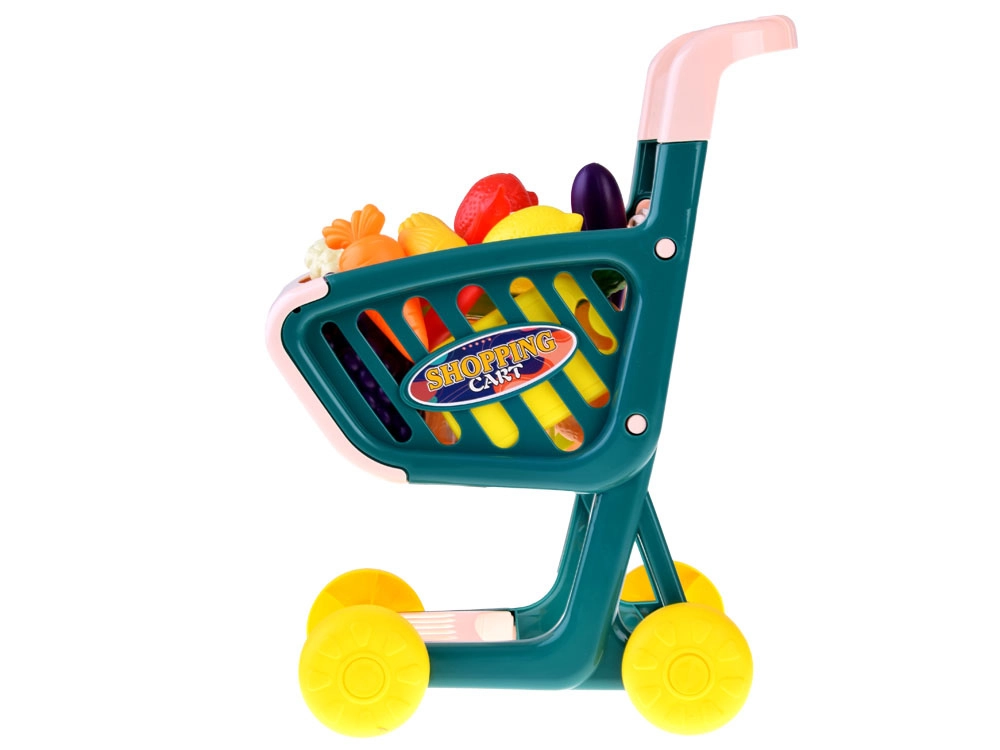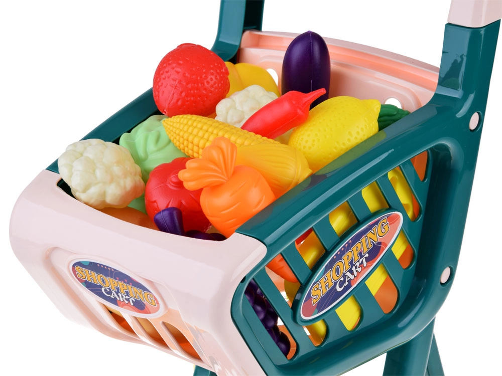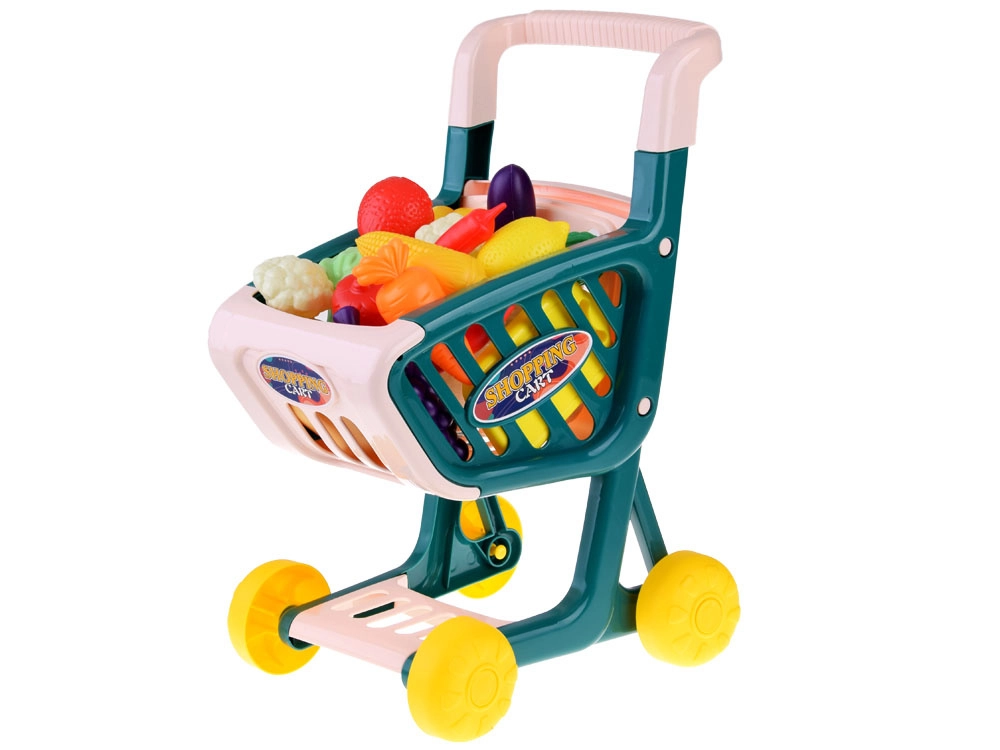 Šis vaikiškas pirkinių vežimėlis puikiai tinka žaidimui „supermarketas“. Dėl tvirto plastikinio krepšio, plačių ratukų ir patogios rankenos vežimėlį vaikams lengva valdyti. Rinkinyje yra įvairūs vaisiai ir daržovės ryškiomis spalvomis, kurie skatina kūrybišką žaidimą ir kasdienių veiklų pažinimą.