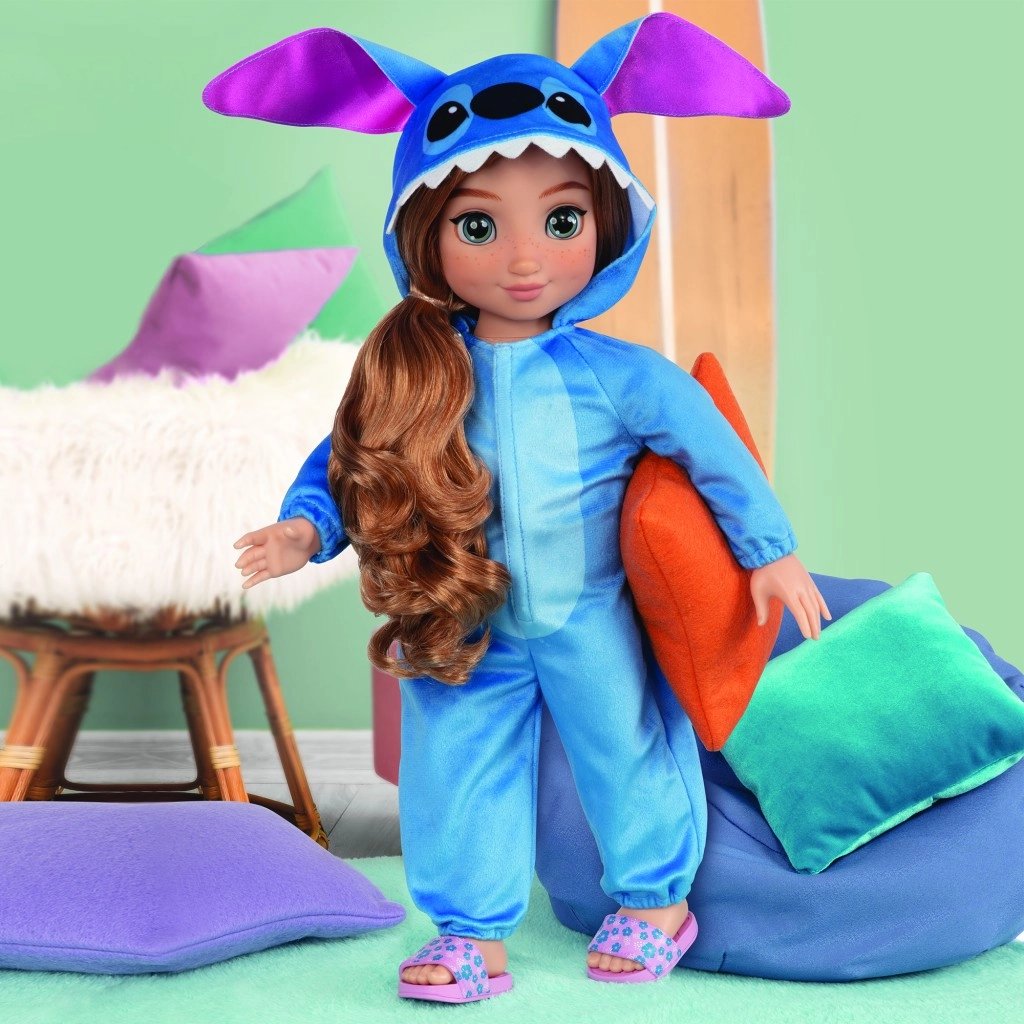 Miela lėlė, įkvėpta Disney personažo Stitch, maždaug 45 cm ūgio, su ilgais šukuojamais plaukais ir judriomis galūnėmis. Stilingas mėlynas kombinezonas su užtrauktuku ir kapišonu su ausytėmis skatina kūrybišką žaidimą, persirengimą ir pozavimą. Puiki draugė glostymui, šukavimui ir kasdieniams nuotykiams.