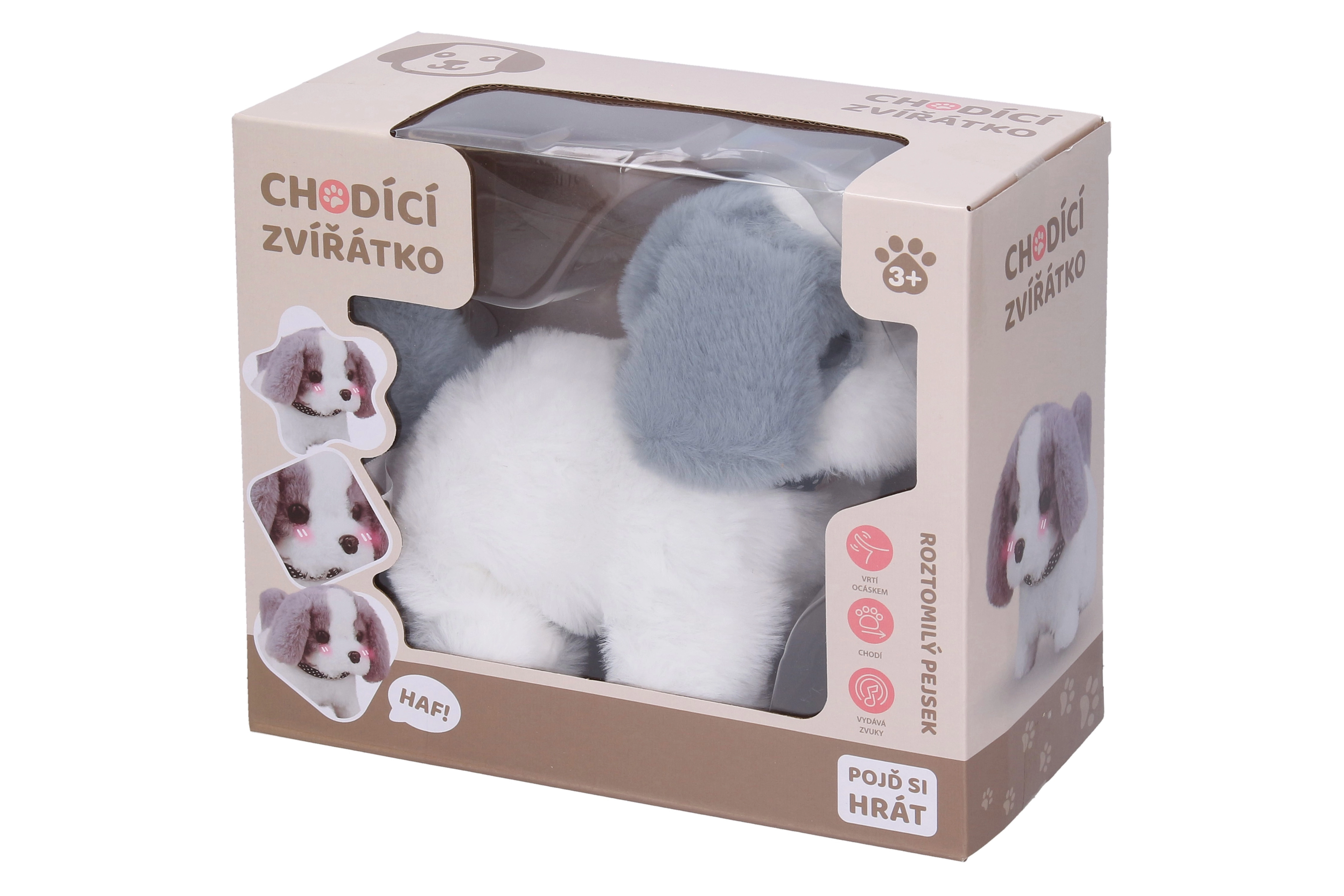 Mielas vaikščiojantis pliušinis šuo pradžiugins kiekvieną vaiką. Įjungus žaislas juda, vizgina uodegą ir siūlo šviesos bei garso efektus. Patogus ON/OFF jungiklis, kompaktiški matmenys ir paprastas valdymas daro šį augintinį puikia dovana.