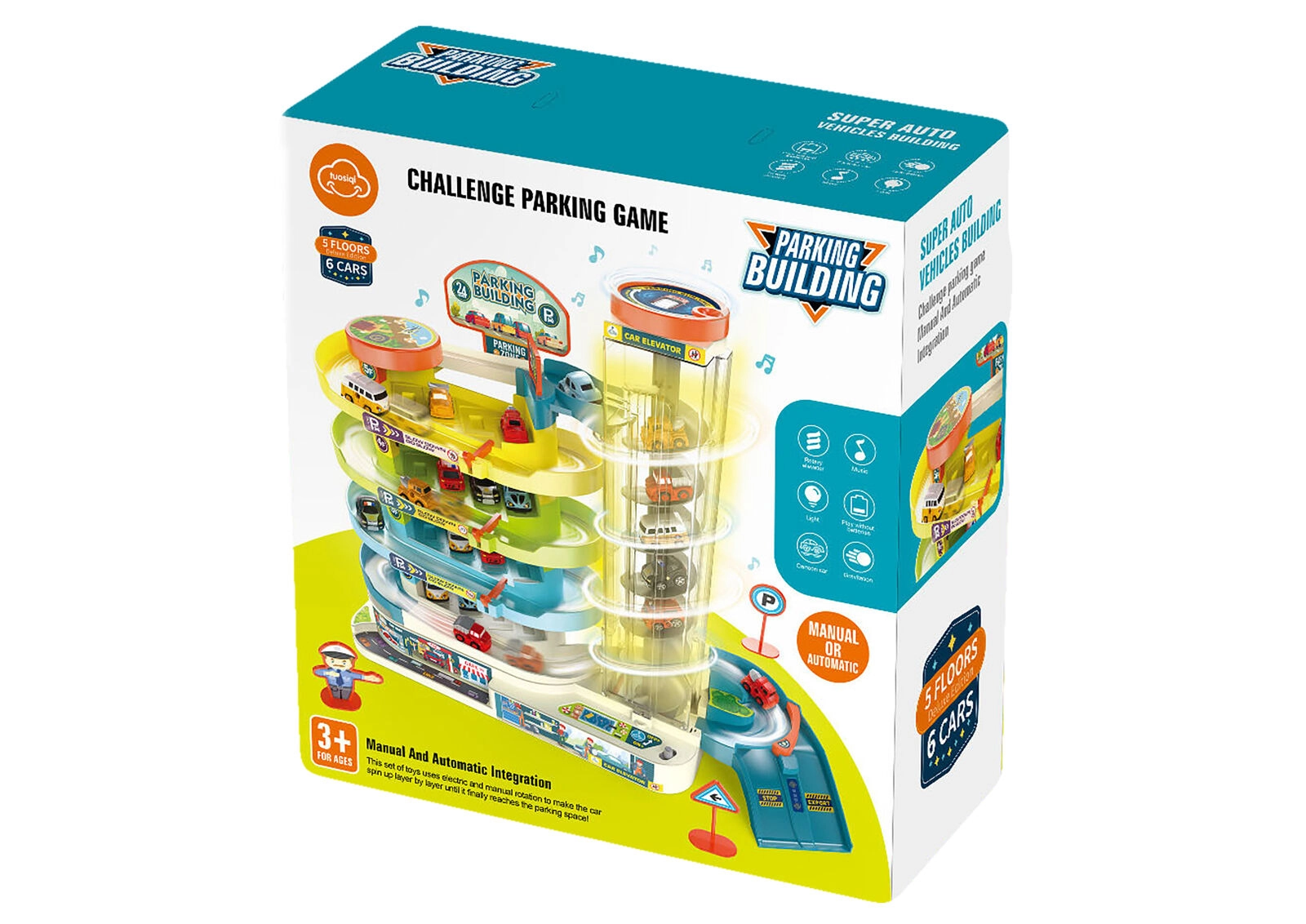 Ši dviaukštė garažo aikštelė suteikia vaikams valandas kūrybiško žaidimo. Veikiantį keltuvą galima naudoti su baterijomis ir rankiniu būdu (jungiklis), tad vaikai gali pasirinkti, kaip žaisti. Šviesos ir garso efektai suteikia parkavimui ir automobilių judėjimui dar daugiau autentiškumo.