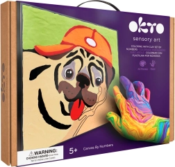 Šis kūrybinis OKTO rinkinys idealiai tinka visiems, kurie mėgsta kurti ir nori pasidaryti savo dekoraciją be sudėtingo piešimo teptukais. Darbas pagal skaičius yra paprastas ir atpalaiduojantis – tereikia tepti spalvotą modeliavimo masę ant pažymėtų laukelių ir stebėti, kaip gimsta gyvas buldogo portretas.