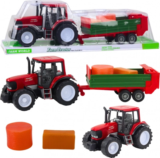 Atraskite tvirtą ūkio rinkinį, kuris pradžiugins mažus kaimo gerbėjus. Detaliai perteiktas raudonas traktorius su dideliais ratais ir nuimama žalia priekaba tikroviškai atkuria žemės ūkio techniką. Rinkinyje taip pat yra šieno ryšuliai, kuriuos galima krauti, vežti ir iškrauti.