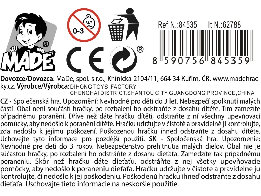 Linksmas ir spalvingas vaikų žaidimas, lavinantis vikrumą ir koordinaciją. Šis 28 cm dydžio plastikinis žaidimas idealiai tinka vaikams nuo 3 metų ir tiekiamas patogiame dėkle. Puikus pasirinkimas šeimos žaidimams ir kantrybės lavinimui. Patvarus plastikas, lengvas naudojimas ir tinka vaikams 3+.