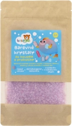 Palepinkite vaikus žaisminga ir kartu švelnia priežiūra – spalvoti maudymosi kristalai su probiotikais lengvai šnypščia, nudažo vandenį ir rūpinasi jautria oda. Juose yra probiotikų natūraliai odos barjero funkcijai palaikyti, jūros druskos mineralų, avižų ekstrakto ir migdolų aliejaus. Dermatologiškai patikrinta, tinka net jautriai vaikų odai. Patogus sandarus maišelis išlaiko šviežumą ir palengvina laikymą.