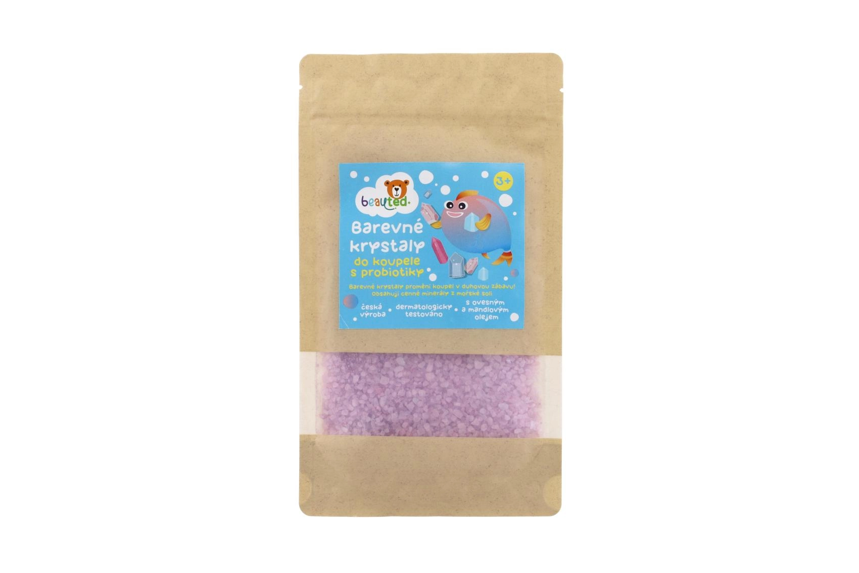 Spalvoti maudymosi kristalai paverčia kasdienę higieną džiugiu ritualu. Įbėrus į šiltą vandenį, jie sukuria šnypščiantį efektą, maloniai nudažo vandenį ir palieka subtilų kvapą. Dėl probiotikų, jūros druskos mineralų, avižų ekstrakto ir migdolų aliejaus derinio padeda nuraminti ir pamaitinti odą bei palaikyti jos natūralią apsaugą.