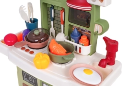 Ši kokybiška plastikinė virtuvėlė ryškiomis spalvomis skatina vaizduotę, smulkiąją motoriką ir socialinius įgūdžius. Dėl apšviestų degiklių ir realistiškų virimo bei kepimo garsų žaidimas atrodo autentiškas. Paspaudus mygtukus, groja linksmos dainelės, skaičiuotės ir pateikiami saugos patarimai, todėl žaisti dar įdomiau.