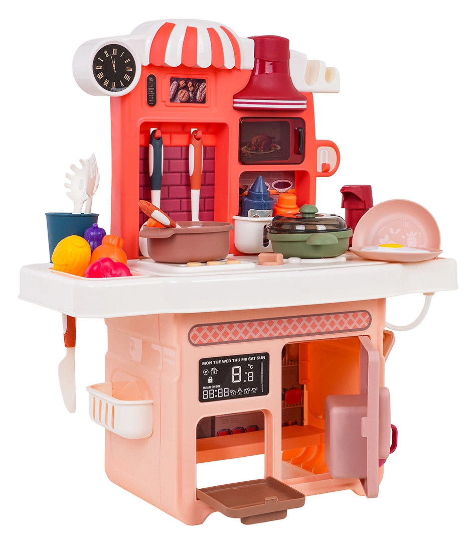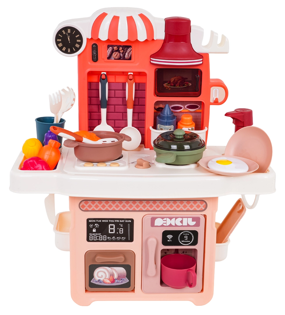 Ši kokybiškai pagaminta vaikiška virtuvėlė ryškiomis spalvomis lavina vaizduotę, vaidmenų žaidimą ir smulkiąją motoriką. Pasukus valdiklius, pasigirsta autentiški virimo garsai ir kartu užsidega apšviestos kaitvietės. Paspaudus mygtukus, virtuvėlė groja daineles, eilėraščius ir saugos nurodymus, kurie žaismingai moko tinkamų įpročių.