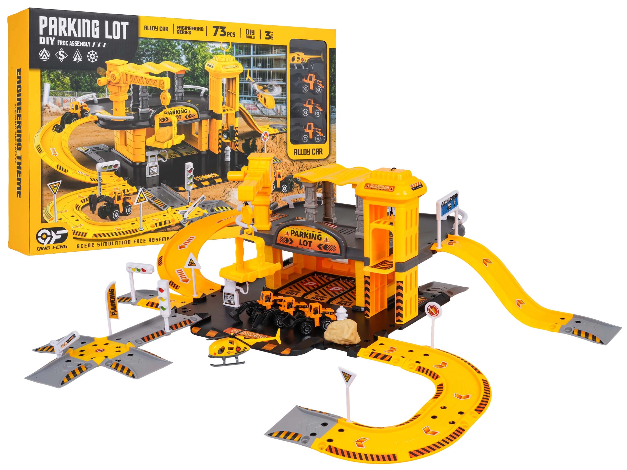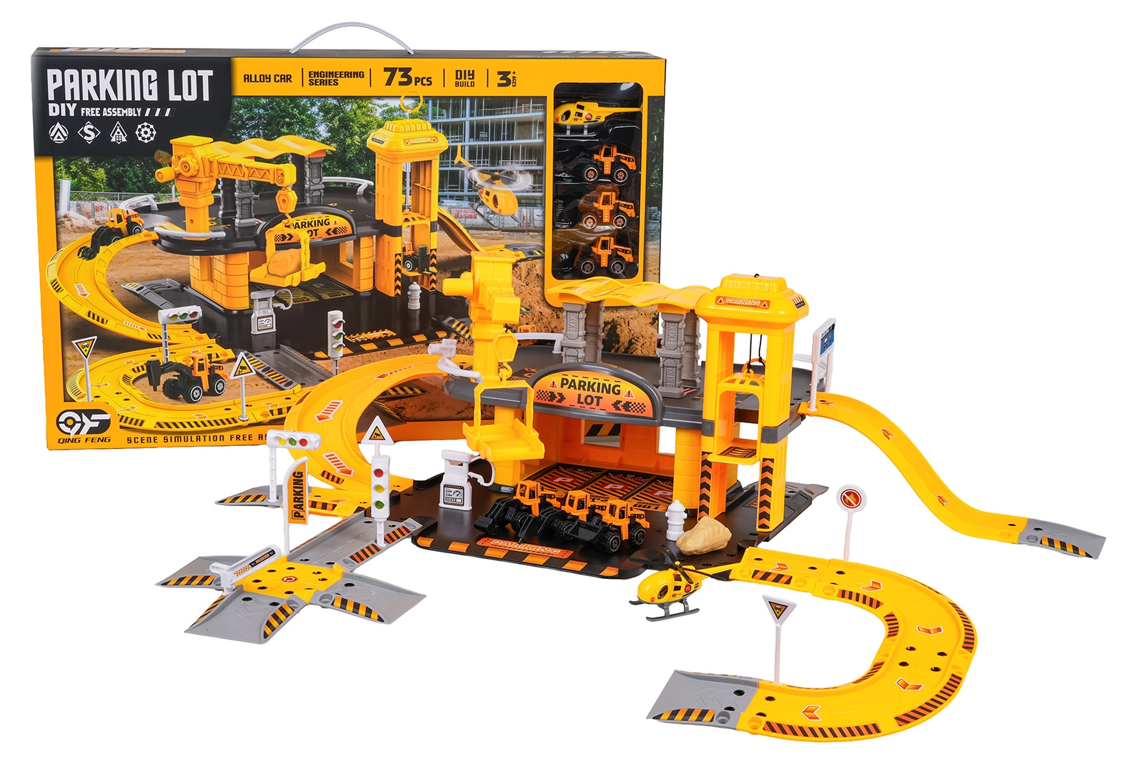 Atraskite daugiapakopį smagumą su statybų tematikos stovėjimo aikštele vaikams nuo 3 metų. Rinkinyje yra dviejų aukštų konstrukcija, rankinis keltuvas, rampai, darbinis kranas ir gausūs priedai, įskaitant 3 metalinius statybinius automobiliukus ir sraigtasparnį. Pagaminta iš saugių, kokybiškų medžiagų, idealiai tinka kūrybiniam vaidmenų žaidimui.