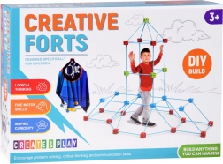 Ši kūrybinė statybų dėžė siūlo 89 dalis didelėms idėjoms: 58 patvarios lazdelės/šiaudeliai (apie 38 cm) ir 29 jungimo kaladėlės (apie 5 × 5 × 5 cm), papildytos didele tekstiline danga su spauda „stovykla“ ir patogiu tinklinio audinio laikymo maišeliu. Dėl lengvų lazdelių ir modulinių jungtukų vaikai pastatys tvirtas, bet lengvai perkeliamos konstrukcijas.