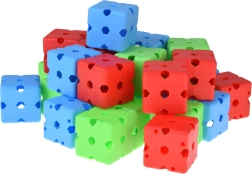 Spalvotos kaladėlės su daugiakrypčiais angomis leidžia jungti lazdeles įvairiais kampais. Taip lengvai pastatysite bokštus, kupolus ir erdvius žaidimų fortus.