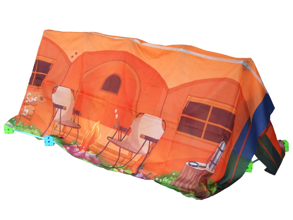 Rinkinyje yra spalvingas tekstilinis uždangalas su stovyklavimo motyvu. Tiesiog užmeskite jį ant konstrukcijos ir sukurkite jaukią žaidimų erdvę.